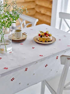 Skap en uforglemmelig og festlig borddekking med denne vakre Tillykke-duken fra Södahl. Det elegante designet med broderte danske flagg og margueritter bringer glede, tradisjon og kos inn i hjemmet ditt - perfekt for livets særlige øyeblikk.