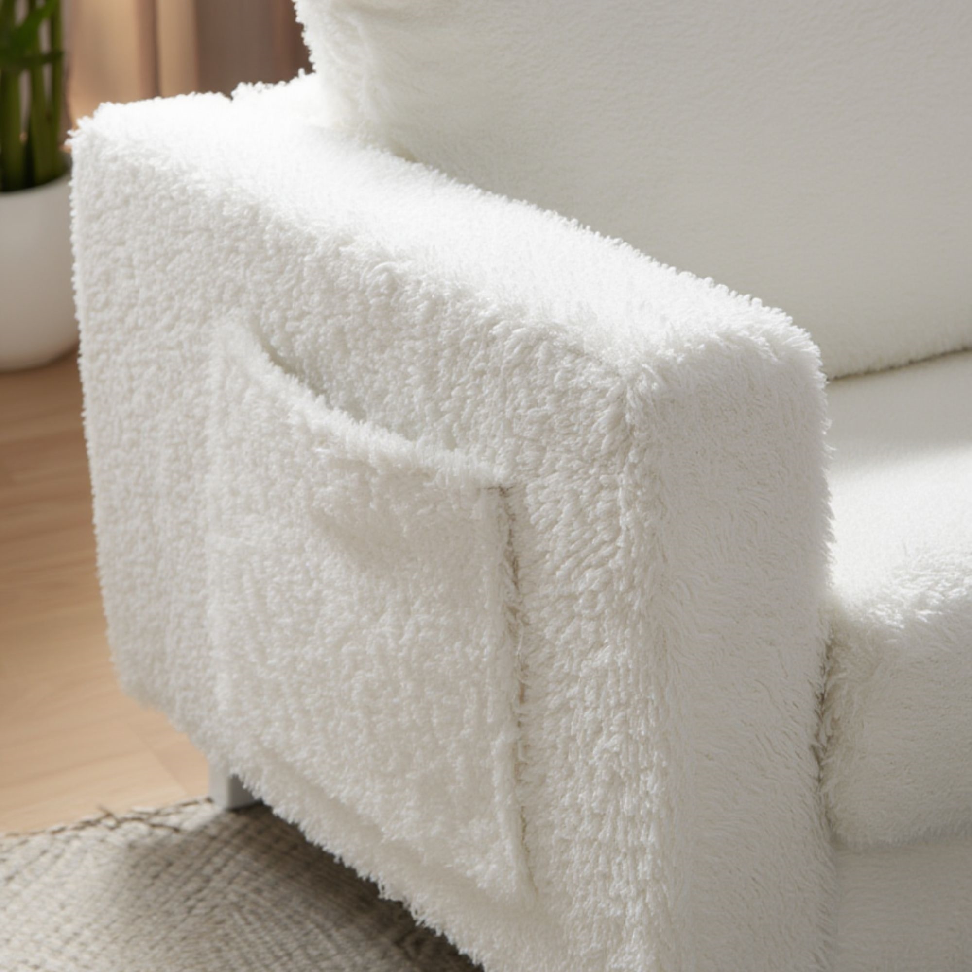En ekstra praktisk detalj ved denne foldesofaen til barn er de romslige sidelommene på begge sider (22 cm brede og 18 cm høye). Her kan barnet oppbevare bøker, kosedyr eller små skatter, slik at favorittingene alltid er like i nærheten. Det gjør sofaen både koselig og funksjonell - perfekt for både barnerommet og stuen.