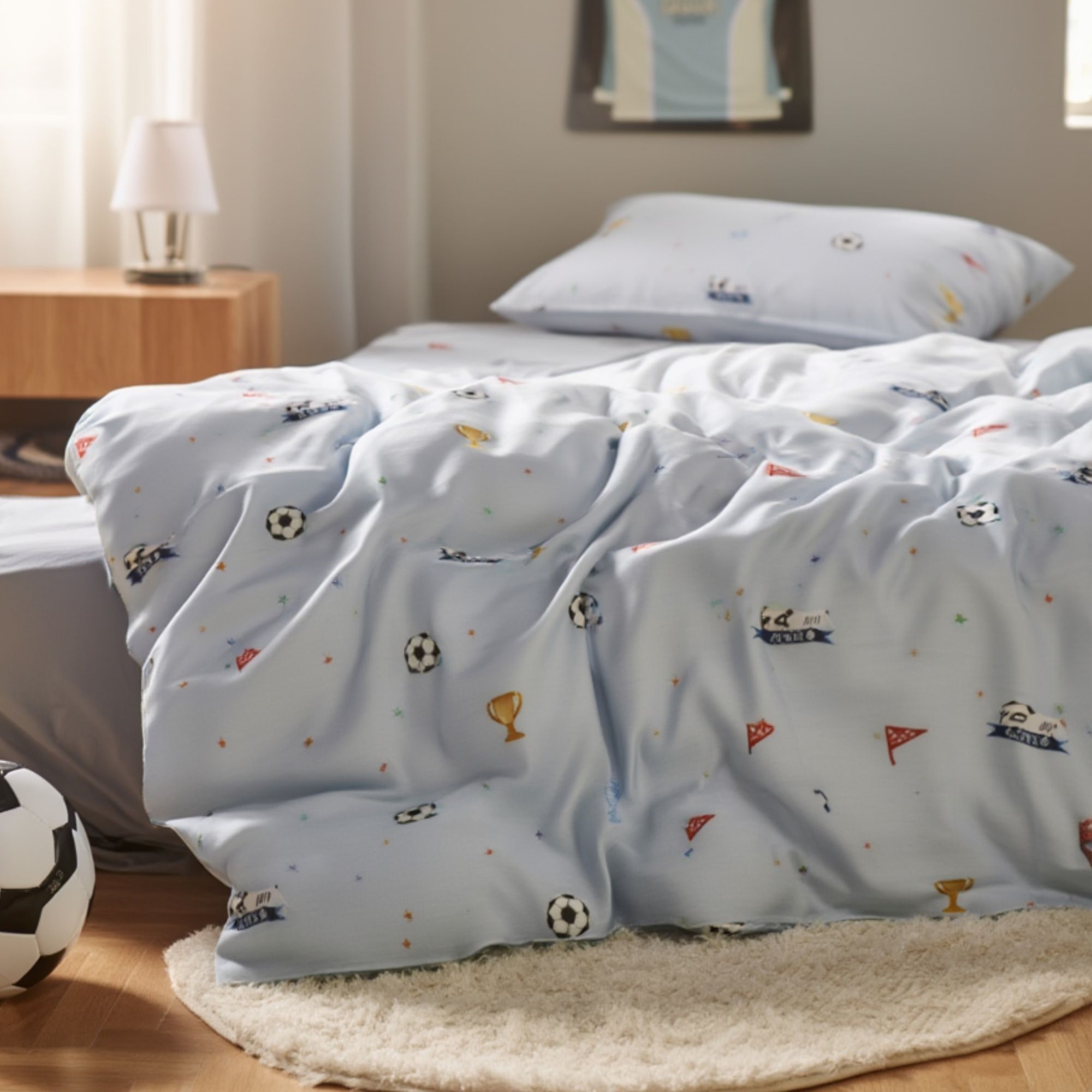 Sengesettet er laget av 100% myk bomull, som er pustende og skånsom mot babyens sarte hud. Bomullens naturlige egenskaper hjelper til med å regulere temperaturen gjennom natten, slik at babyen din får en trygg, komfortabel og rolig søvn – hele året.