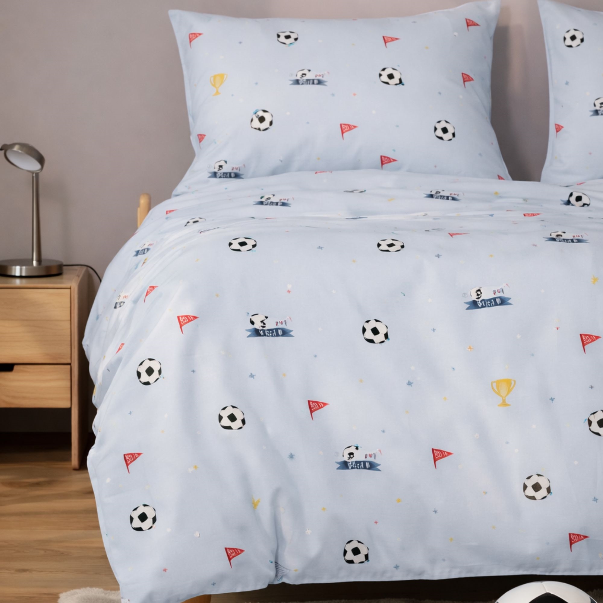 Skap en lys og rolig stemning på barnerommet med dette fine babysengetøyet fra By Mats i en lyseblå farge med små, dekorative fotballer. Det enkle og nordiske designet gir et mykt og harmonisk uttrykk, som passer vakkert inn i både moderne og klassiske innredninger.