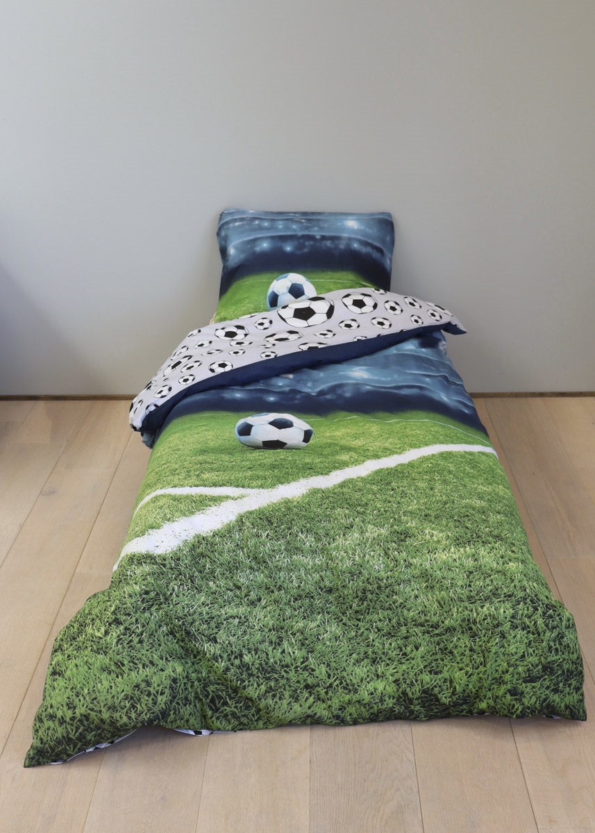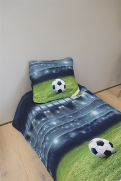 Forside »Sengetøy » Sengetøy til barn » Sengetøy til barn 140x200 cm Fotball sengetøy - 140x200 cm - Stadion og fotballmotiv - Dynetrekk med vendbart design - 100% bomulls sengesett Spar30% Licens 499,00349,00NOKSpar 150,- På lager Trustpilot Antall Legg i kurv Se mer fra: Licens Artikkelnummer:NB2356-1 Les vår sengetøyguide Se vårt store utvalg av laken Se vårt store utvalg av dyner 140x200 Har du spørsmål om produktet? Høy pusteevneMykt og deilig bomullOEKO-TEX® sertifisert Dynetrekk: 140x200 cm Putetrekk: 60x63 cm Materiale: 100% myk bomull Farge: Grønn, blå og grå Motiv: Vendbart design - forside med motiv. Bakside med all-over-print av fotballer Lukking: Dyne med knapper og putetrekk med overlapp Vask: 60° Tørketromling: Ja Tåler stryking: Ja Sertifisering: STANDARD 100 by OEKO-TEX® (20220K2642 AITEX). Din garanti for at produktet er fritt for helseskadelig kjemi. Sengetøy til barn og fotballglade sjeler. Produsert i 100% myk bomull, med et smart motiv av en fotball på stadion som er opplyst, fotballbane og fotballer. Et print av fotballer på en grå bakgrunn fullfører sengetøyet med en rolig bakside. Et slitesterkt bomulls barnesengesett som gjør barnerommet litt mer spennende. Fotball sengetøy med vendbart design, forskjellige motiver på forsiden og baksiden. På den ene siden av sengetøyet, er det motiv av en fotball som ligger klar til et hjørnespark og i bakgrunnen ser du stadion opplyst. På den andre siden er det et rolig all-over-print av fotballer på en grå bakgrunn. Enhver fotballglad gutt eller jente vil bli glad for dette fotball sengesettet.. Sengesettet er produsert i 100% myk bomull som gjør settet slitesterkt og med høy pusteevne. Den rene bomullskvaliteten gir et deilig og mykt sengesett, som er med på å fremme sovekomfort for barnet. Bomullssengetøy kan vaskes ved 60° i vaskemaskinen, som også er med på å holde et høyt hygienisk nivå. Sengetøyet er ytterligere fremstilt med OEKO-TEX sertifisering, som er din garanti for at settet er fritt for skadelig kjemi. Gå på utkikk etter favorittene og mye mer, i vårt store utvalg av tilbehør til barneuniverset For barnet bør sengen være et trygt sted og alle elementene skal sammen skape myke og deilige omgivelser for barnet å finne ro i. Bruk derfor gjerne barnets interesser til å skape et trygt soverom for barnet. Hos oss kan du finne et stort utvalg av tilbehør til sengen og barnerommet, alt fra laken til dyner, puter, sengetøy og mye mer, og masse produkter med alle barnas favoritter på. Alt sammen elementer som kan være med på å skape det rette sovemiljøet og rommet til ditt barn. Her kan du finne deilige og myke kvalitetslaken Tilbake til Sengetøy til barn 140x200 cm