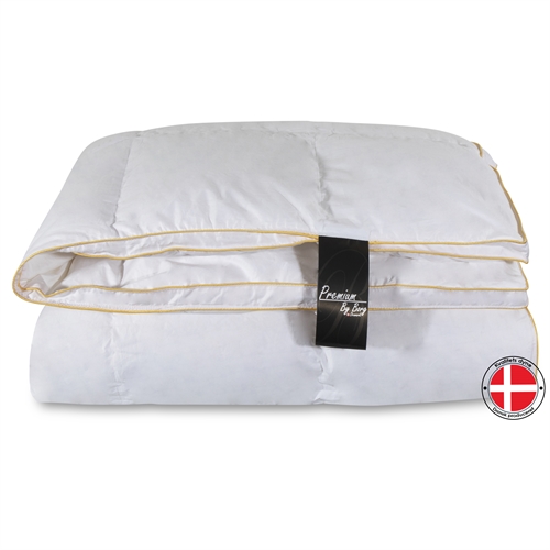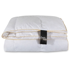 Forside »Dyner » Enkeltdyner » Enkeltdyne 140x200 cm Gåsedunsdyne 140x200cm - Luksus helårsdyne med gåsedun - Premium By Borg - gulldynen Spar60% Norvigroup 7.499,002.985,00NOKSpar 4.514,- På lager Trustpilot Antall Legg i kurv Se mer fra: Norvigroup Artikkelnummer:525-1 Les vår dyneguide Les om vedlikehold av dyner og puter Se vårt store utvalg av puter Har du spørsmål om produktet? Gåsedunsdyne - GulldynenBæreevne: Over 12Produsert i Danmark Størrelse: 140x200 cm Type: Helårs lun Fylling: 90 % nye hvite europeiske gåsedun Merke: Premium by borg - gulldynen Produsert i: Danmark Fyldvekt: 385g Bæreevne: Over 12 (gammel målemetode) Bæreevne: 800 (ny målemetode) Bolster: 100 % bomullssateng 80/80 (ekstra fin og myk) Konstruksjon: 5x7 kassettdyne med panelkant Vask: 60° (Viktig å bruke enzymfritt vaskemiddel) Tørketrommel: Skal tørkes med tørkekuler Garanti: 10 år Sertifisering: EN12934-normen - Klasse 1 dun + EN 12130-normen Sertifisering: NOMITE - Fri for husstøvmidd Sertifisering: DOWNAFRESH - 100% rene dun Sertifisering: Down pass - Høyeste dyreetiske forhold Sertifisering: STANDARD 100 by OEKO-TEX® (1176-194 DTI) Se alle våre hodeputer her Eksklusiv helårsdyne med gåsedun – fra danske Quilts of Denmark. En deilig lun helårsdyne som passer de flestes behov. Gåsedun er en av de mest populære duntypene i Danmark, og med god grunn. Gåsedun er en lett type dun som holder veldig godt på varmen. Dynen er sydd i 5x7 kassetter, slik at dunet fordeler seg jevnt og isolerer uten kuldebroer. Denne helårsdyne er sydd med en 3 cm panelkant slik at de fyldige og lette dunene isolerer helt ut til kantene. Dette optimaliserer varmen fra de eksklusive gåsedunene. Dynen har en bæreevne på over 12, noe som er et godt uttrykk for dynens kvalitet. Den høye bæreevnen bidrar også til at kroppen kan puste gjennom natten. Bolsteret er laget av 100 % myk og deilig bomullssateng, som er så tettvevd at husstøvmidd ikke kan trenge gjennom. Se vårt store utvalg av sengetøy i 140x200 cm her Premium by borg sikrer deg deilige gåsedunsdyner, som er produsert etter høye krav og standarder. Dynene kommer med en panelkant slik at fyllet fordeles jevnt, og varmen fra de eksklusive gåsedunene utnyttes best mulig. Alle fjær er vasket, varmebehandlet og renset før produksjon, og kun de beste dunene og stoffene brukes i produksjonen. Tilbake til Enkeltdyne 140x200 cm