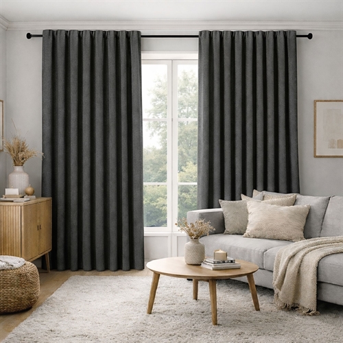 Et moderne og tidløst tekstilgardin produsert i polyester, som er lett å vedlikeholde og sette opp. Foruten å være praktisk i bruk, tilfører et pent vevd stoffgardin også et hint av estetisk varme til ditt hjem. Det kraftige gardinet er vevd helt tett, noe som gjør at gardinet også er lysdempende, uten å være 100% blackout. Det egner seg derfor godt til stuer, spisestuer, soverom og andre steder hvor design og praktikk skal fungere sammen.