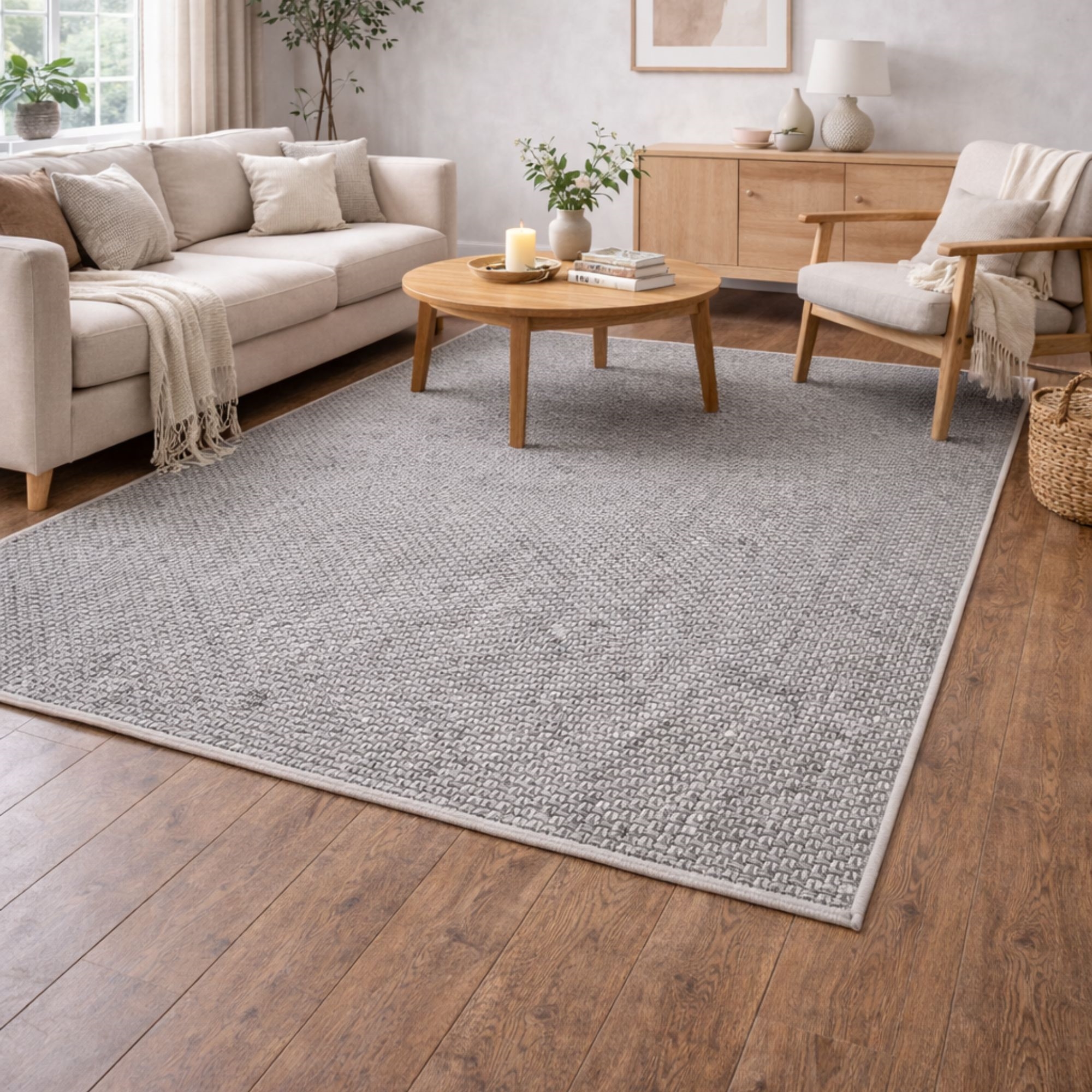 Savner du en enkel og lett måte å skape helhet i hjemmet? Dette flotte gulvteppet kan være det elementet som binder innredningen sammen. Elegant beige gulvteppe som er det perfekte valget hvis du ønsker et tidløst design som tilfører litt ekstra stil i hjemmet. Den fine strukturen og den lyse, naturlige fargen gir rommet et mer harmonisk uttrykk, som passer inn i ethvert hjem. Teppet er ideelt i stuen under salongbordet, på soverommet eller som et mykt og innbydende element i entréen. Gulvteppet er laget i et slitesterkt og praktisk materiale. Det gjør teppet motstandsdyktig for daglig bruk og egnet for rom med aktivitet. Det sørger også for at gulvteppet ligger bedre på plass. Du får et gulvteppe som både er funksjonelt og pent i mange år. Med et Helsinki gulvteppe kombineres komfort, holdbarhet og nordisk design i én løsning – et trygt valg hvis du ønsker et gulvteppe som både er praktisk og estetisk tiltalende. Du kan finne dette flotte gulvteppet i flere forskjellige størrelser og farger avhengig av hva som passer best i ditt hjem. Alle teppene er sertifisert med STANDARD 100 by OEKO-TEX®, hvilket betyr at gulvteppet er testet for skadelige stoffer. Din trygghet for et produkt uten helseskadelig kjemi – og et sunnere inneklima i hjemmet.
