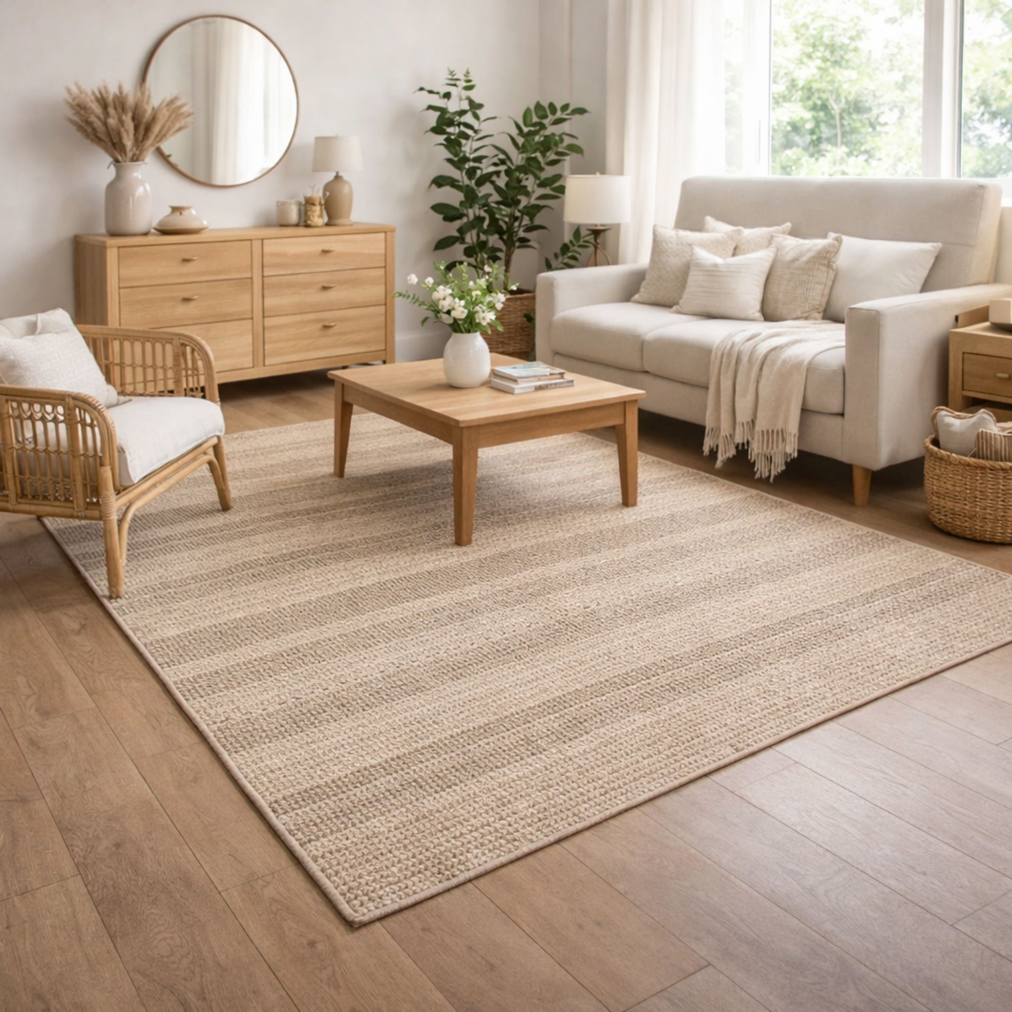 Forside »Innredning » Dekorasjoner » Gulvtepper Gulvteppe - 140x200 cm - Vevd - Natur - Kenzy - Nordstrand Home Spar31% Nordstrand Home 1.298,00898,00NOKSpar 400,- På lager Trustpilot Antall Legg i kurv Se mer fra: Nordstrand Home Artikkelnummer:TA3005-3 Se vårt store utvalg av kunstige planter og blomster Se vårt utvalg av matter Se vårt store utvalg av alt til din boliginnredning Har du spørsmål om produktet? Flott og minimalistisk naturfarget gulvteppeTett veving og naturlig finishPraktisk til hverdagsbruk Type: Kort lugg gulvteppe Størrelse: 140x200 cm Tykkelse: 5 mm Farge: Ensfarget natur Design: Kenzy Materiale: 100% polypropylen Bakside: Tråddelt PP Bruk: Innendørs og utendørs Merke: Nordstrand Home Anbefalt vedlikehold: Støvsuging & fuktig klut Sertifisering: STANDARD 100 by OEKO-TEX® (11.HTR.94219). Din garanti for at produktet er fri for helsefarlige kjemikalier. Savner du en enkel og grei måte å skape helhet i hjemmet ditt? Da kan dette flotte gulvteppet være det elementet som binder innredningen sammen. Kenzy-serien er et moderne og slitesterkt gulvteppe i blant annet naturfarge, som kombinerer det enkle med moderne design. Teppets polypropylenfiber gjør det spesielt motstandsdyktig mot slitasje og lett å vedlikeholde - perfekt i en travel hverdag. Materialet holder formen godt over tid og krever kun regelmessig støvsuging for å bevare det fine utseendet. Den tette vevingen bidrar til en robust overflate hvor smuss ikke lett trenger ned i strukturen. Kenzy-gulvteppet er et opplagt valg hvis du ønsker en holdbar, prisvennlig og stilren løsning som skaper varme og sammenheng i innredningen din. Se vårt store utvalg av forskjellige boligtekstiler her Med Nordstrand Home er du sikret boligtekstiler i dansk design - i nordisk stil. Nordstrand Home legger stor vekt på følelsen av velvære i et flott, men samtidig avslappende miljø. Med Nordstrand Home trenger du ikke gå på kompromiss, du finner alltid produkter i klassiske og moderiktige farger. Nordstrand Home – Så føler du deg hjemme! Tilbake til Gulvtepper