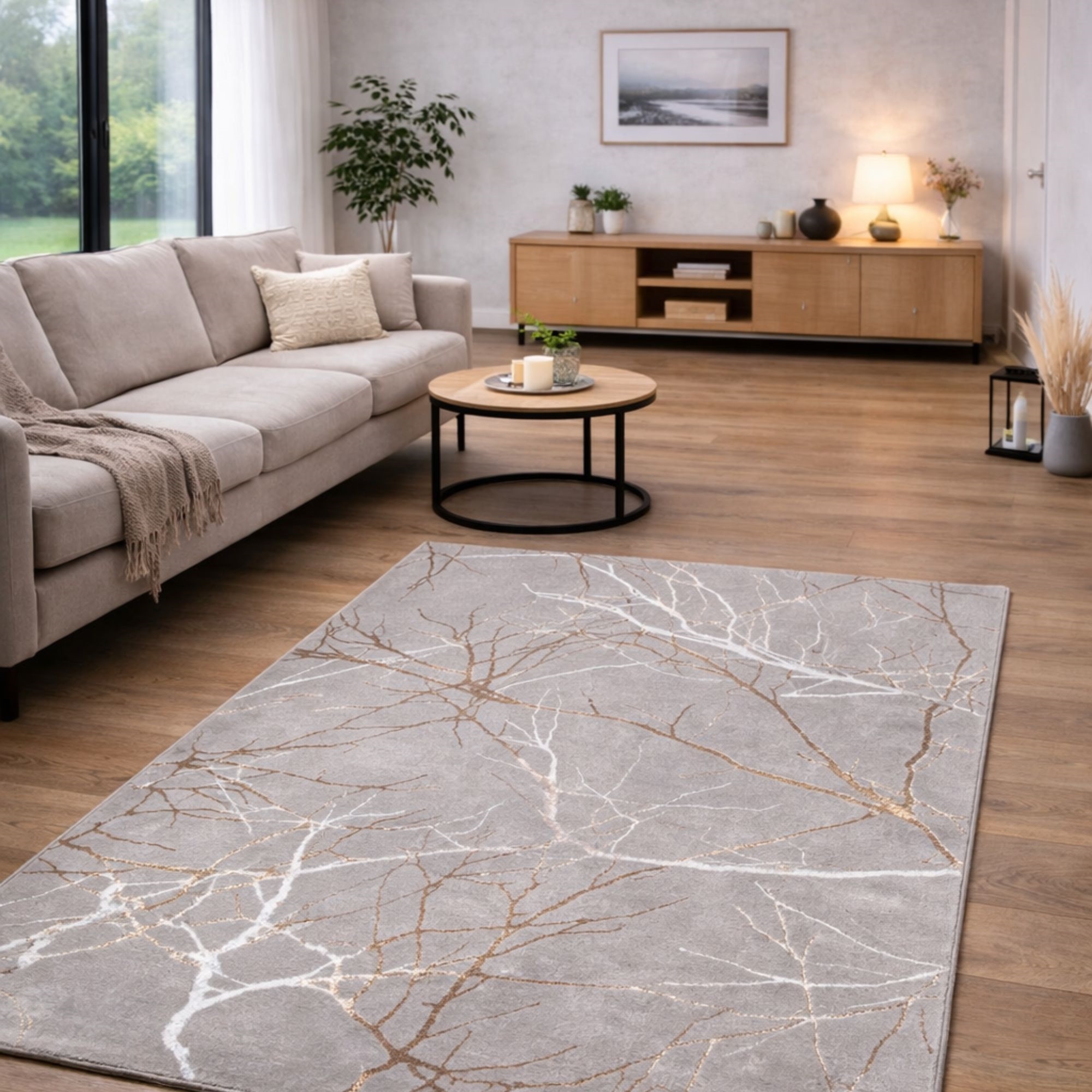 Forside »Innredning » Dekorasjoner » Gulvtepper Gulvteppe - 140x200 - Grå - Gull/sølv detaljer - Creation - Nordstrand Home Spar12% Nordstrand Home 1.699,001.499,00NOKSpar 200,- På lager Trustpilot Antall Legg i kurv Se mer fra: Nordstrand Home Artikkelnummer:TA1029-3 Se vårt store utvalg av kunstige planter og blomster Se vårt utvalg av matter Se vårt store utvalg av alt til din boliginnredning Har du spørsmål om produktet? Elegant grått gulvteppe med gull- og sølvdetaljerTett vevd kvalitet i 100% polyesterVakker kombinasjon av matte og blanke tråder Type: Kort lugg gulvteppe Størrelse: 140x200 cm Tykkelse: 8 mm Farge: Grå med motiv Design: Creation Materiale: 100% polyester Bakside: Bomull Bruksområde: Innendørs Merke: Nordstrand Home Antall punkter/m2/tettvevd: 480.000 Anbefalt vedlikehold: Støvsuging og fuktig klut Leter du etter en enkel og lett måte å skape helhet i hjemmet ditt på? Da kan dette flotte gulvteppet være det elementet som binder innredningen sammen. En enkel, men elegant måte å friske opp hjemmet på, er å velge dette vakre grå gulvteppet med tremotiv og elegante gull- og sølvdetaljer. Det dekorative tremotivet skaper et levende og annerledes uttrykk, der den metalliske effekten tilfører rommet dybde og et luksuriøst preg. De fine kontrastene mellom de grå nyansene og de skinnende detaljene gjør teppet til et naturlig blikkfang i både stue, soverom eller kontor. Den vevde kvaliteten gir en jevn struktur og en overflate som er enkel å vedlikeholde i hverdagen. Polyesterfibrene bidrar til fargeekte farger og holdbarhet, så teppet holder seg pent i mange år. Det er et ideelt valg for deg som ønsker et moderne gulvteppe med et eksklusivt uttrykk og fine detaljer som løfter innredningen. Se vårt store utvalg av forskjellige boligtekstiler her Med Nordstrand Home er du sikret boligtekstiler i dansk design - i nordisk stil. Nordstrand Home legger stor vekt på følelsen av velvære i et vakkert, men samtidig avslappende miljø. Med Nordstrand Home trenger du ikke gå på kompromiss; du finner alltid produkter i klassiske og moteriktige farger. Nordstrand Home – Så føler du deg hjemme! Tilbake til Gulvtepper