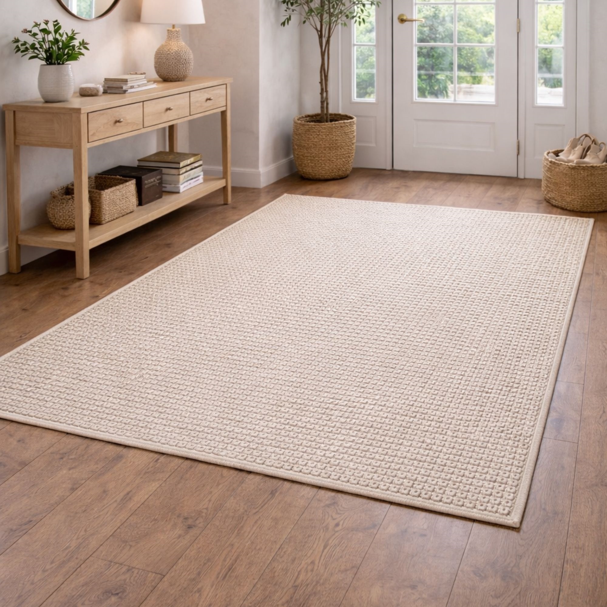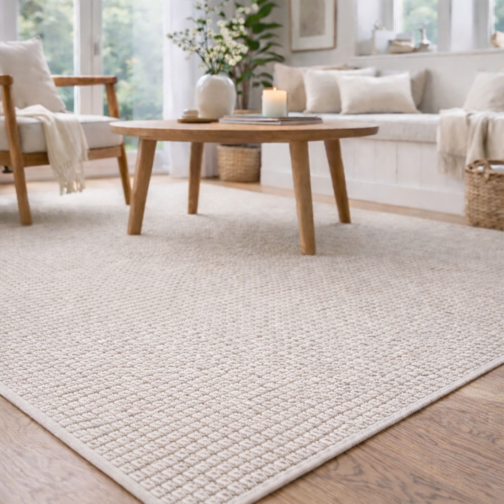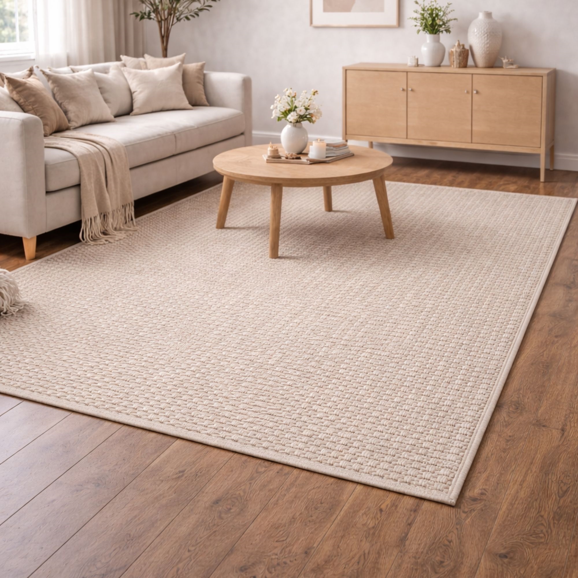 Savner du en enkel og lett måte å skape helhet i hjemmet ditt? Da kan dette flotte gulvteppet være det elementet som binder innredningen sammen. Elegant beige gulvteppe som er det perfekte valget hvis du ønsker et tidløst design som skaper litt ekstra stil i hjemmet. Den fine strukturen og den lyse, naturlige fargen gir rommet et mer harmonisk uttrykk som passer inn i ethvert hjem. Teppe er ideelt i stuen under sofabordet, paø soverommet eller som et mykt og innbydende element i entréen. Gulvteppet er laget i et slitesterkt og praktisk materiale. Det gjør teppet motstandsdyktig mot daglig bruk og velegnet til rom med aktivitet. Det sørger også for at gulvteppet sitter bedre fast. Du får et gulvteppe som både er funksjonelt og pent i mange år. Med et Helsinki-gulvteppe kombineres komfort, holdbarhet og nordisk design i én løsning – et sikkert valg hvis du ønsker et gulvteppe som både er praktisk og estetisk tiltalende. Du kan finne det flotte gulvteppet i flere forskjellige størrelser og farger, avhengig av hva som passer best i hjemmet ditt. Alle teppene er sertifisert med STANDARD 100 by OEKO-TEX®, noe som betyr at gulvteppet er testet for skadelige stoffer. Din trygghet for et produkt uten helseskadelig kjemi – og et sunnere innemiljø i hjemmet.