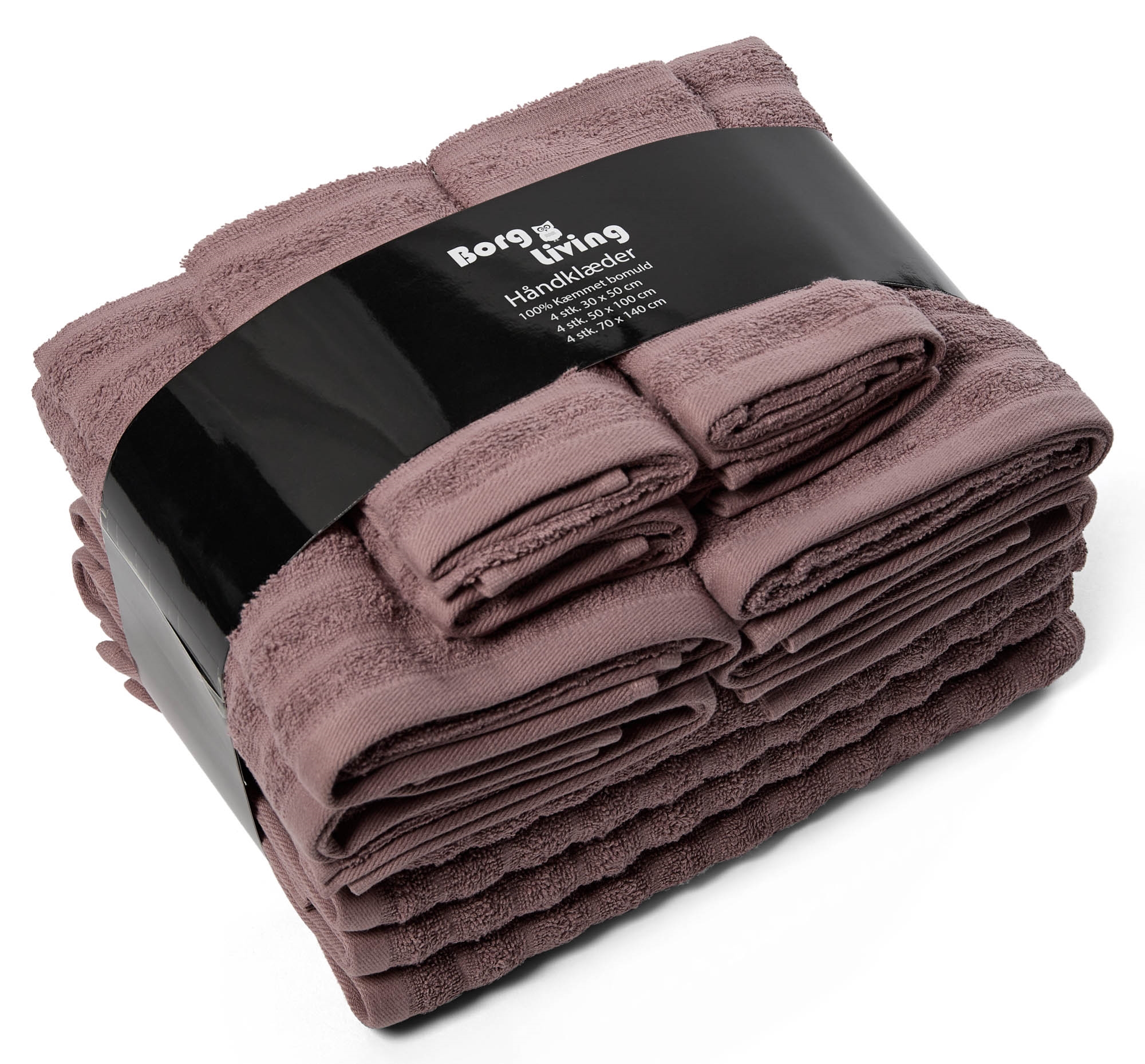 Forside »Håndklær Håndklepakke 12 stk. myke håndklær i 100% kjemmet bomull - Lavendelfargede håndklær fra Borg Living Lotus Spar60% Borg Living 2.199,00885,00NOKSpar 1.314,- På lager Trustpilot Antall Legg i kurv Se mer fra: Borg Living Artikkelnummer:H871-12 Les vår håndkle guide Se vårt store utvalg av tilbehør til badet Har du spørsmål om produktet? Høy absorberingsevneNordisk designOEKO-TEX® sertifisert Type: Badehåndklær • håndklær • gjestehåndklær Størrelse: 4 stk. 70x140 cm 4 stk. 50x100 cm 4 stk. 30x50 cm Farge: Lavendel Design: Nordisk Merket: Borg Living Stropp for oppheng: Ja, topp og side Kvalitet: 100% kjemmet Bomull Vekt: 550g Vask: 60° Tørketromling: Ja Sertifisering: STANDARD 100 by OEKO-TEX® (2020OK1190) Din garanti for at produktet er testet og godkjent - Hvilket sikrer at produktet er fri for skadelige stoffer og kjemikalier. Komplett pakke med 12 luksus håndklær Gjør badet ditt komplett med denne store pakken med håndklær, som inneholder alt du trenger - hele 12 stk. i forskjellige størrelser. Settet består av: 4 stk. håndklær på 70x140 cm 4 stk. håndklær på 50x100 cm 4 stk. gjestehåndklær på 30x50 cm Alle håndklærne er laget av 100% fin kjemmet bomull, noe som gir en ekstra myk og luksuriøs følelse mot huden samtidig som de har høy absorberingsevne. Det vevde designet med striper kalt Nordic gir et klassisk og stilig uttrykk, som passer inn i ethvert bad. Uansett om du trenger store håndklær etter badet, litt mindre håndklær til hendene eller små gjestehåndklær til ekstra bruk, så har denne pakken alt. Perfekt for både hverdagen og gjestebesøk. Finn lekre badekåper her Oeko-Tex sertifisert Håndkleet er OEKO-TEX sertifisert, noe som betyr at det er testet for skadelige kjemikalier og er trygt å bruke. Det er et tegn på høy kvalitet og ansvarlig produksjon. Dette er ikke bare bra for miljøet, men også for huden din, da det reduserer risikoen for allergiske reaksjoner og hudirritasjoner. Vi anbefaler alltid at helt nye håndklær legges i bløt i kaldt vann før første vask - Dette forbedrer håndklenes absorberingsevne. Det danske merket Borg Living produserer eksklusive serier av dyner, puter og hjemmetekstiler til hjemmet ditt. Merket som ble etablert i 2013 er bl.a. kjent for deres nyskapende innenfor kvalitet og design. Borg Livings fantastiske produkter, bidrar til en optimal og behagelig natts søvn samt pynter hjemmet ditt med moderne og lekkert boligtilbehør. Finn alt til badet her Tilbake til Håndklær