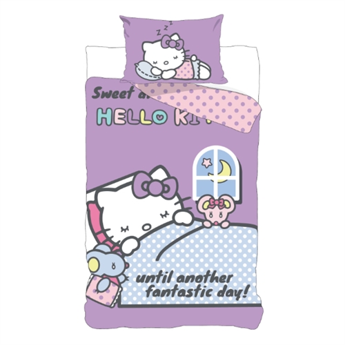 Forside »Sengetøy » Sengetøy til barn » Junior sengetøy 100x140 cm Hello Kitty sengetøy 100x140 cm - Lilla juniorsengesett med Hello Kitty - Vendbart motiv - 100% bomulls sengetøy Spar40% Licens 499,00299,00NOKSpar 200,- På lager Trustpilot Antall Legg i kurv Se mer fra: Licens Artikkelnummer:3603-8 Les vår sengetøyguide Se vårt store utvalg av laken Se vårt store utvalg av dyner 100x140 Har du spørsmål om produktet? Høy pusteevne100% myk bomullOEKO-TEX® sertifisert Dynetrekk: 100x140 cm - Junior sengesett Putetrekk: 40x45 cm Materiale: 100% myk bomull Farge: Lilla Motiv: Hello Kitty Design: Vendbar - Forside med Hello Kitty og tekst, bakside med prikker Lukking: Dyne med knapper, putetrekk med overlapp Vask: 60° Tørketrommel: Ja Tåler stryking: Ja Sertifisering: STANDARD 100 by OEKO-TEX® (17.HPK.23879). Din garanti for at produktet er fritt for helseskadelig kjemi. Mykt junior sengetøy i 100% bomull, med et søtt design av Hello Kitty. Produsert med lette og pustende bomullstråder som gir sengesettet en følelse av mykhet, som gjør at dynen føles deilig for barnet å sove med. Balansen i naturlige egenskaper og komfort fra det myke materialet, kombinert med det koselige designet, gjør dette settet til en sikker favoritt hos barnet. Hello Kitty junior sengetøy med den søte katte-jenta Hello Kitty, som vi alle kjenner fra tegnefilmen med samme navn. Sengetøyet har et vendbart design. På forsiden sees Hello Kitty som ligger i sengen samt tekst, og på baksiden er det fine lilla prikker. Det myke bomullsstoffet føles behagelig mot huden og sikrer en god og rolig natts søvn. Materialet er pustende og slitesterkt, noe som gjør det ideelt til daglig bruk. Sengsettet er OEKO-TEX® sertifisert, noe som garanterer at det er testet for skadelige stoffer og trygt for barn å sove med. Sengetøyet er velegnet til daglig bruk, da det er enkelt å vaske og tåler 60°. Uten behov for stryking beholder det sin mykhet og farge, selv etter flere vask. For barnet bør sengen være et trygt sted, og alle elementene skal sammen skape myke og deilige omgivelser for barnet å finne ro i. Bruk derfor gjerne barnets interesser for å skape et trygt soverom for barnet. Hos oss kan du finne et stort utvalg av tilbehør til sengen og barnerommet, fra laken til dyner, puter, sengetøy og mye mer, og masse produkter med alle barnas favoritter. Alt sammen elementer som kan være med på å skape det rette sovemiljøet og rommet for ditt barn. Her kan du finne deilige og myke kvalitetslaken til barn Tilbake til Junior sengetøy 100x140 cm