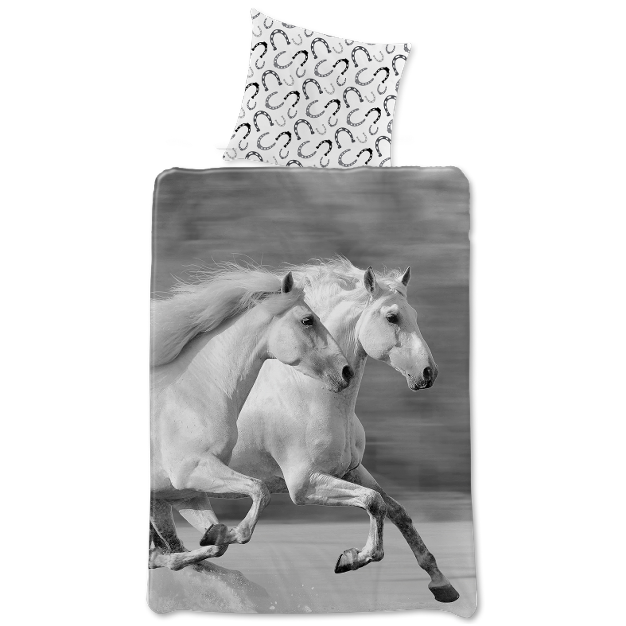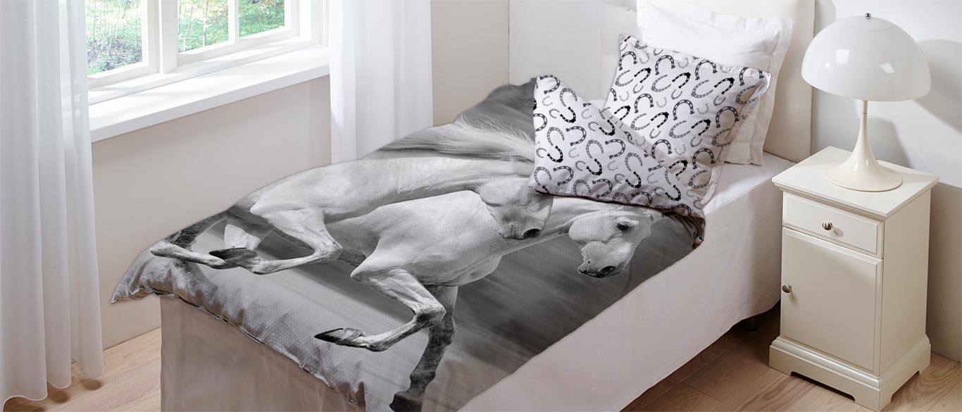 Forside »Sengetøy » Sengetøy til barn » Sengetøy til barn 140x200 cm Hestes sengetøy 140x200 cm - Galopperende hester - Vendbart dynetrekk - 100% bomulls sengesett Spar40% Licens 499,00299,00NOKSpar 200,- På lager Trustpilot Antall Legg i kurv Se mer fra: Licens Artikkelnummer:21163-1 Les vår sengetøyguide Se vårt store utvalg av lagner Se vårt store utvalg av dyner 140x200 Har du spørsmål om produktet? Høy pusteevneMykt og deilig bomullOEKO-TEX® sertifisert Dynetrekk: 140x200 cm Putetrekk: 60x63 cm Materiale: 100% myk bomull Farge: Grå og hvit Motiv: Hester Design: Vendbart - Forside med galopperende hester, bakside med all-over print av hestesko Lukking: Dyne med knapper, putetrekk med overlapp Vask: 60° Tørketrommel: Ja Tåler stryking: Ja Sertifisering: STANDARD 100 by OEKO-TEX® (1976-303). Din garanti for at produktet er fritt for helseskadelig kjemi. Sengesett i 100% myk bomull, med flotte hester. Med lette og pustende bomullstråder gir dette sengesettet en myk overflate som gjør dynen behagelig for barnet å sove med. Et slitesterkt sengesett med høy pusteevne og absorberingsevne, som vil hjelpe med å gjøre sovetiden til en god opplevelse. Hestes sengesett. Et flott sett sengetøy, som er vendbart med forskjellige motiver for og bak. På forsiden sees to elegante, løpende hester. Vender du sengesettet om, sees en side med avtrykk av hestesko. Enhver hesteglad jente eller gutt vil elske dette settet sengetøy. Sengesettet er produsert i 100% myk bomull som gjør settet slitesterkt og med høy pusteevne. Den rene bomullskvaliteten gir et lekkert og mykt sengesett som bidrar til å fremme sovekomfort for barnet. Bomullssengetøy kan vaskes ved 60° i vaskemaskin, noe som også bidrar til å opprettholde et høyt hygienisk nivå. Sengetøyet er i tillegg fremstilt med OEKO-TEX-sertifisering, som er din garanti for at settet er fritt for skadelig kjemi. Gå på utkikk etter favorittene og mye mer i vårt store utvalg av tilbehør til barnerommet For barnet bør sengen være et trygt sted, og alle elementene skal sammen skape myke og fine omgivelser for barnet å finne ro i. Bruk derfor gjerne barnets interesser for å skape et trygt soverom for barnet. Hos oss kan du finne et stort utvalg av tilbehør til sengen og barnerommet, fra lagner til dyner, puter, sengetøy og mye mer, og masse produkter med alle barnas favoritter på. Alt sammen elementer som kan bidra til å skape det rette sovemiljøet og rommet for ditt barn. Her kan du finne deilige og myke kvalitetslagner Tilbake til Sengetøy til barn 140x200 cm