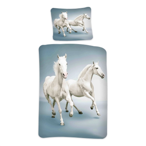 Forside »Sengetøy » Sengetøy til barn » Sengetøy til barn 140x200 cm Hestes sengetøy - 140x200 cm - Hvite galopperende hester - Vendbart design - Sengetøy i 100% bomull Spar30% Licens 499,00349,00NOKSpar 150,- På lager Trustpilot Antall Legg i kurv Se mer fra: Licens Artikkelnummer:8144-1 Les vår sengetøyguide Se vårt store utvalg av lagner Se vårt store utvalg av dyner 140x200 Har du spørsmål om produktet? Mykt - 100% bomullGod pusteevne og lett vedlikeholdSlitesterkt Dynetrekk: 140x200 cm Putetrekk: 60x63 cm Materiale: 100% myk bomull Farge: Hvite og blå farger Motiv: Vendbart design - forside med hestemotiv, bakside med skyggeprint av hester Lukking: Dyne med knapper og putetrekk med overlapp Vask: 60° Tørketrommel: Ja Tåler stryking: Ja Sertifisering: STANDARD 100 by OEKO-TEX® (2012PK0016). Din garanti for at produktet er fritt for helseskadelig kjemi. Sengetøy med et kult motiv av ville hvite hester i full galopp. Det myke sengetøyet produsert i 100% bomull er både pustende og absorberende, og gir god sovekomfort. Et slitesterkt bomullssengetøy for barn som gjør barnerommet litt mer spennende. Et veldig fint sett sengetøy med hesteprint. Bildet viser to galopperende, vakre og hvite hester. Bakgrunnen er i blålige nyanser. Når sengetøyet vendes, er det små avtrykk av galopperende hester på hvit bakgrunn. Et virkelig vakkert sengetøy som alle hesteglade jenter og gutter vil elske å kose seg med. Sengetøyet er produsert i 100% myk bomull som gjør settet slitesterkt og med høy pusteevne. Den rene bomullskvaliteten gir et lekkert og mykt sengetøy som bidrar til god sovekomfort for barnet. Bomullssengetøy kan vaskes på 60° i vaskemaskin, noe som også bidrar til å opprettholde et høyt hygienisk nivå. Sengetøyet er i tillegg fremstilt med OEKO-TEX-sertifisering, som er din garanti for at settet er fritt for skadelig kjemi. Gå på jakt etter favorittene og mye mer i vårt store utvalg av tilbehør til barneuniverset For barnet bør sengen være et trygt sted, og alle elementene skal sammen skape myke og gode omgivelser for barnet å finne ro i. Bruk derfor gjerne barnets interesser for å skape et trygt soverom. Hos oss kan du finne et stort utvalg av tilbehør til sengen og barnerommet, fra lagner til dyner, puter, sengetøy og mye mer, og masse produkter med alle barnas favoritter. Alt sammen elementer som kan bidra til å skape riktig sovemiljø og rom for ditt barn. Her kan du finne deilige og myke kvalitetslagner Tilbake til Sengetøy til barn 140x200 cm