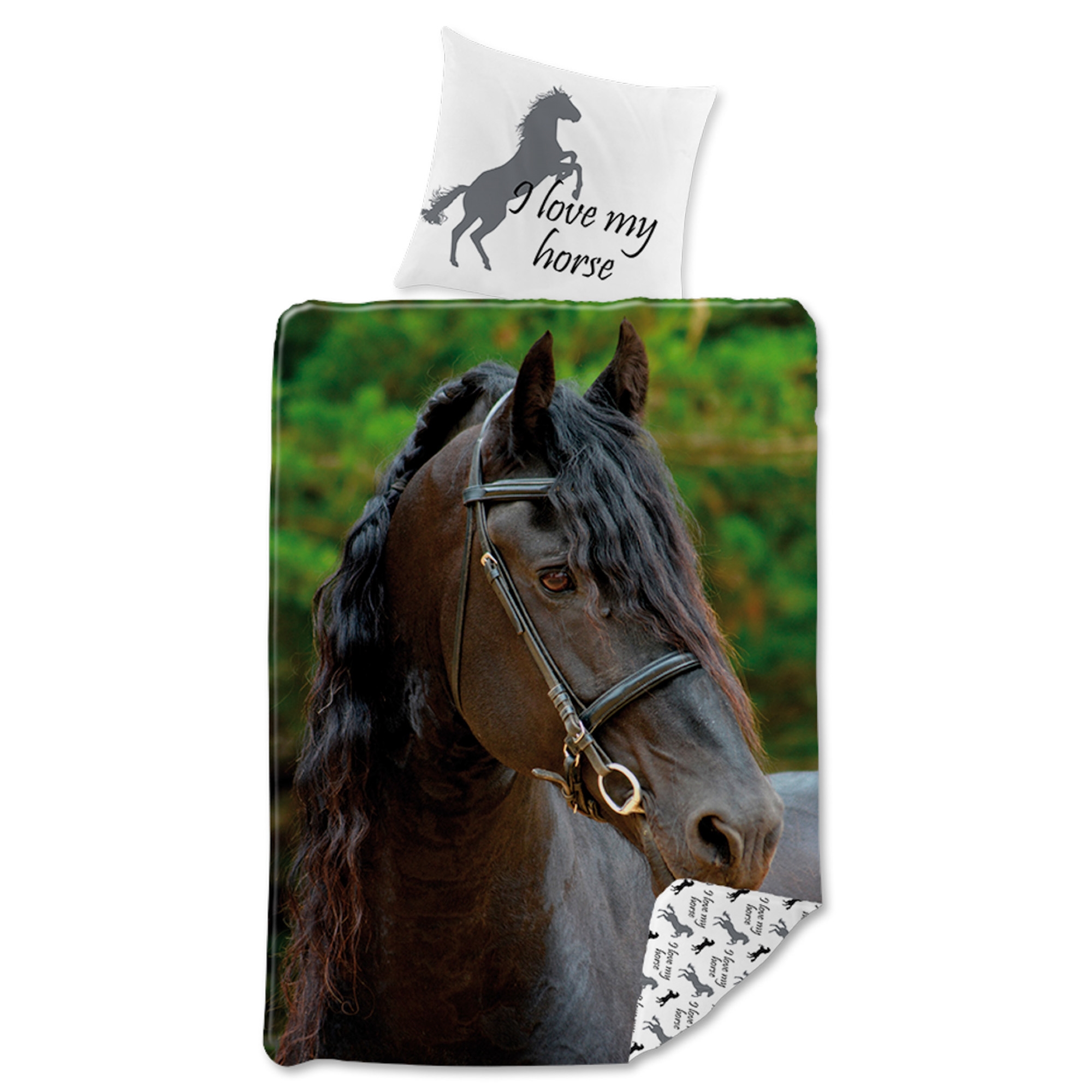 Forside »Sengetøy » Sengetøy til barn » Sengetøy til barn 140x200 cm Hestesengetøy 140x200 cm - I love my horse - Vendbart dynetrekk - 100% bomulls sengetøy Spar30% Licens 499,00349,00NOKSpar 150,- På lager Trustpilot Antall Legg i kurv Se mer fra: Licens Artikkelnummer:1580-1 Les vår sengetøyguide Se vårt store utvalg av laken Se vårt store utvalg av dyner 140x200 Har du spørsmål om produktet? Populært designMykt og deilig bomullOEKO-TEX® sertifisert Dynetrekk: 140x200 cm Putetrekk: 60x63 cm Materiale: 100% myk bomull Farge: Brun og grå Motiv: Hest Design: Vendbart - Forside med hestemotiv, bakside med all-over print av hester Lukking: Dyne med knapper, putetrekk med overlapp Vask: 60° Tørketromling: Ja Tåler stryking: Ja Sertifisering: STANDARD 100 by OEKO-TEX®. Din garanti for at produktet er fri for helseskadelig kjemi. Mykt sengetøy med motiv av en flott hest. Det fine sengetøyet har to sider å velge mellom, da det er laget med smart vendbart design. Det myke sengesettet produsert i 100% bomull er både pustende og absorberende, og gir god sovekomfort. Et slitesterkt bomulls barnesengesett som gjør barnerommet litt mer spennende. Et flott hestesengetøy, som er vendbart med forskjellige motiver for og bak. På den ene siden er det motiver av en flott svart/brun hest. Vender du sengesettet om, sees en side med avtrykk av små hester. Enhver hesteglad jente eller gutt vil elske dette sengesettet. Det er alltid en god idé å bruke barnets interesser hvis man ønsker å skape et tryggere og mer spennende sovemiljø for barnet. Sengesettet er produsert i 100% myk bomull som gjør settet slitesterkt og med høy pusteevne. Den rene bomullskvaliteten gir et lekkert og mykt sengesett som bidrar til å fremme sovekomfort for barnet. Bomullssengetøy kan vaskes ved 60° i vaskemaskin, noe som også bidrar til å opprettholde et høyt hygienisk nivå. Sengetøyet er i tillegg fremstilt med OEKO-TEX sertifisering, som er din garanti for at settet er fritt for skadelig kjemi. Gå på utkikk etter favorittene og mye mer i vårt store utvalg av tilbehør til barneuniverset For barnet bør sengen være et trygt sted, og alle elementene skal sammen skape myke og deilige omgivelser for barnet å finne ro i. Bruk derfor gjerne barnets interesser for å skape et trygt soverom for barnet. Hos oss kan du finne et stort utvalg av tilbehør til sengen og barnerommet, fra laken til dyner, puter, sengetøy og mye mer, og masse produkter med alle barnas favoritter på. Alt sammen elementer som kan bidra til å skape det rette sovemiljøet og rommet for ditt barn. Her kan du finne deilige og myke kvalitetslaken Tilbake til Sengetøy til barn 140x200 cm