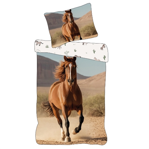 Forside »Sengetøy » Sengetøy til barn » Sengetøy til barn 140x200 cm Hestesengetøy 140x200 cm - Vendbart sengesett med en flott brun hest - 100% mykt bomulls sengetøy Spar30% Licens 499,00349,00NOKSpar 150,- På lager Trustpilot Antall Legg i kurv Se mer fra: Licens Artikkelnummer:2433-1 Les vår sengetøyguide Se vårt store utvalg av laken Se vårt store utvalg av dyner 140x200 Har du spørsmål om produktet? Høy pusteevneMykt og deilig bomullOEKO-TEX® sertifisert Dynetrekk: 140x200 cm Putetrekk: 60x63 cm Materiale: 100% bomull Farge: Brun Vev: 220TC (Thread count = antall tråder per kvadrattomme) Motiv: Vendbart - Forside med en brun hest, bakside med all-over print av hester og ikoner Lukking: Dyne med knapper og putetrekk med overlapp Vask: 60° Tørketromling: Ja Tåler stryking: Ja Sertifisering: STANDARD 100 by OEKO-TEX® (17.HPK.23879 Hohenstein). Din garanti for at produktet er fritt for helseskadelig kjemi. Sengesett i 100% myk bomull, med en flott, brun hest. Produsert med lette og pustende bomullstråder som gir sengesettet en følelse av mykhet, som gjør at dynen føles behagelig for barnet å sove med. Et slitesterkt sengesett med høy pusteevne og absorberingsevne, som vil hjelpe med å gjøre sengetid til en god opplevelse. Drøm deg bort på prærien med dette flotte hestesengetøyet. Sengesettet er vendbart, med et søtt design av en stor, brun hest på forsiden og et all-over print av hester og ikoner på baksiden. Det er alltid en god idé å bruke barnets interesser for å skape et tryggere og mer spennende sovemiljø for barnet. Sengesettet er produsert i 100% myk bomull som gjør settet slitesterkt og med høy pusteevne. Den rene bomullskvaliteten gir et deilig og mykt sengesett som bidrar til å fremme sovekomfort for barnet. Bomullssengetøy kan vaskes ved 60° i vaskemaskin, noe som også bidrar til å opprettholde et høyt hygienisk nivå. Sengetøyet er i tillegg OEKO-TEX sertifisert, som er din garanti for at settet er fritt for skadelig kjemi. Gå på utkikk etter favorittene og mye mer i vårt store utvalg av tilbehør til barneuniverset For barnet bør sengen være et trygt sted, og alle elementene skal sammen skape myke og gode omgivelser for barnet å finne ro i. Bruk derfor gjerne barnets interesser for å skape et trygt soverom for barnet. Hos oss kan du finne et stort utvalg av tilbehør til sengen og barnerommet, fra laken til dyner, puter, sengetøy og mye mer, og mange produkter med alle barnas favoritter på. Alt sammen elementer som kan bidra til å skape det rette sovemiljøet og rommet for ditt barn. Her kan du finne deilige og myke kvalitetslaken Tilbake til Sengetøy til barn 140x200 cm