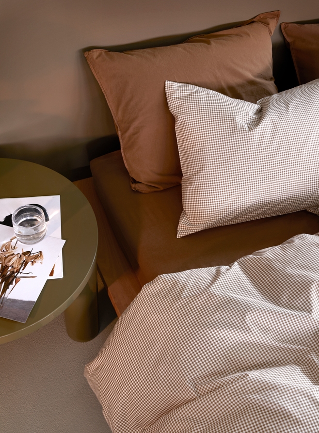 Forside »Sengetøy » Enkelt sengetøy » Enkelt sengetøy 140x200 cm Høie sengetøy - Ekstra fin bomull - 140x200 cm - Frans sengesett med brune ruter fra Høie of Scandinavia. Spar40% Høie Of Scandinavia 769,00459,00NOKSpar 310,- På lager Trustpilot Antall Legg i kurv Se mer fra: Høie Of Scandinavia Artikkelnummer:7653-1 Les vår sengetøysguide Se vårt store utvalg av laken Se vårt store utvalg av dyner 140x200 Har du spørsmål om produktet? Myk og glansfullEkstra fin bomullEasy Care-behandlet. Dynetrekk: 140x200 cm Putetrekk: 1 stk. á 60x63 cm Materiale: 100 % ekstra fin bomull Veving: Ekstra fin 220TC (trådantall = antall tråder per kvadrattomme) Farge: Brun/Kanel Design: Frans - Ternet Merke: Høie of Scandinavia Lukking: Dynetrekk med glidelås, putetrekk med overlapp Vask: 60° Tørketrommel: Ja Tåler stryking: Ja Sertifisering: STANDARD 100 by OEKO-TEX® (M27M5W5V2 TESTEX) Sertifisering: EASY CARE-behandlet, som betyr at det ikke krøller seg etter vask. Dette Høie of Scandinavia sengesettet er i 100 % ekstra fin bomull. Den ekstra fine bomullen er kjent for sin renhet og gode slitestyrke. Sengesettet er ikke bare mykt og behagelig, men også utrolig slitesterkt, lett og hurtigtørkende. Dette vakre og elegante sengetøyet er produsert med høy fargeektehet. Sengetøyet er OEKO-TEX sertifisert, dette er din garanti for at sengetøyet er testet og fritt for skadelige stoffer og kjemikalier. Høie sengetøy er også Easy Care-behandlet, for mindre krølling og bedre form etter vask. Easy Care gjør sengetøyet ditt ekstra behagelig og lett å stryke. Kjøp lette putetrekk til dine puter her Frisk opp sengen og soverommet med et flott og lekkert sett med sengetøy som dette. Benytt samtidig muligheten til å sikre maksimal sovekomfort ved å legge til et nytt, mykt laken av høy kvalitet. Du finner vårt store utvalg av laken her Høie er et skandinavisk merke som står for tradisjon kombinert med innovasjon. Selskapet har eksistert siden 1850 og har gjennom årene vært med på å forme og utvikle skandinaviske tekstiler og design. Sengetøy fra Høie er hverdagsluksus som alle fortjener. Tilbake til Enkelt sengetøy 140x200 cm