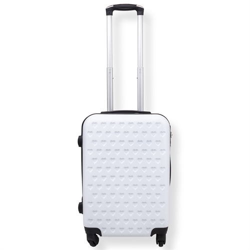 Forside »Oversættelse færdig Hvit kabinkoffert - Hardcase-koffert med hjerter - støtsikkert polypropylen - reisekoffert Spar27% Borg Living 1.099,00799,00NOKSpar 300,- På lager Trustpilot Antall Legg i kurv Se mer fra: Borg Living Artikkelnummer:PR065-5 Se vårt utvalg av store håndklær Se vårt utvalg av toalettmapper og beautybokser Se vårt utvalg av vesker og ryggsekker Har du spørsmål om produktet? Praktisk rominndelingSlitesterk ABS-plast360° dreiehjul Størrelse: Kabinkoffert - liten koffert Innvendige mål: H: 51 cm / B: 36 cm / D: 20 cm Vekt: 2,4 kg Volum: 37 L Materiale: Hardcase - lett ABS-plast Farge: Hvit Design: Hjerter Hjul: 4x 360° dreiehjul Lås: Ja Teleskophåndtak: 2 posisjoner Bærehåndtak: 2 stk. Inndeling: 2 rom - Glidelås og justerbar kryssstropp Kabinkoffert i slitesterk ABS-plast Denne hvite kabinkofferten med hjerter er den perfekte reisefølgesvenn for både korte og lengre turer. Reis enkelt og trygt med en kabinkoffert laget i slitesterk ABS-plast. Materialet gir en sterk og holdbar overflate som tåler harde støt og press, for eksempel på et bagasjebånd. Det slitesterke materialet beskytter dermed eiendelene dine gjennom hele reisen – samtidig er kofferten lett og enkel å håndtere. Kofferten har et teleskophåndtak med to justerbare posisjoner, slik at du enkelt kan tilpasse høyden etter behov. I tillegg får du både et bærehåndtak på toppen og et på siden, noe som gjør det lett å løfte kofferten inn i bagasjehyller, bagasjerom eller på rullebånd. De fire lettløpende 360° dreiehjulene bidrar til maksimal bevegelighet og gjør det enkelt å rulle kofferten i alle retninger uten anstrengelse. På koffertens side er det fire små "føtter", slik at kofferten står sikkert når du setter den fra deg - du unngår dermed en våt og skitten koffert. Sikre dine personlige eiendeler For å sikre dine personlige eiendeler har kofferten en integrert lås og en sterk glidelås som holder tingene beskyttet under hele turen. Innvendig er kofferten delt i to praktiske rom som gjør det enkelt å organisere bagasjen. Det ene rommet har justerbare kryssstropper som holder tøy på plass, mens det andre rommet er utstyrt med en glidelås-lukking som er ideell for mindre gjenstander eller ting som må være ekstra godt sikret. Se vårt store utvalg av håndklær her Tilbake til Oversættelse færdig
