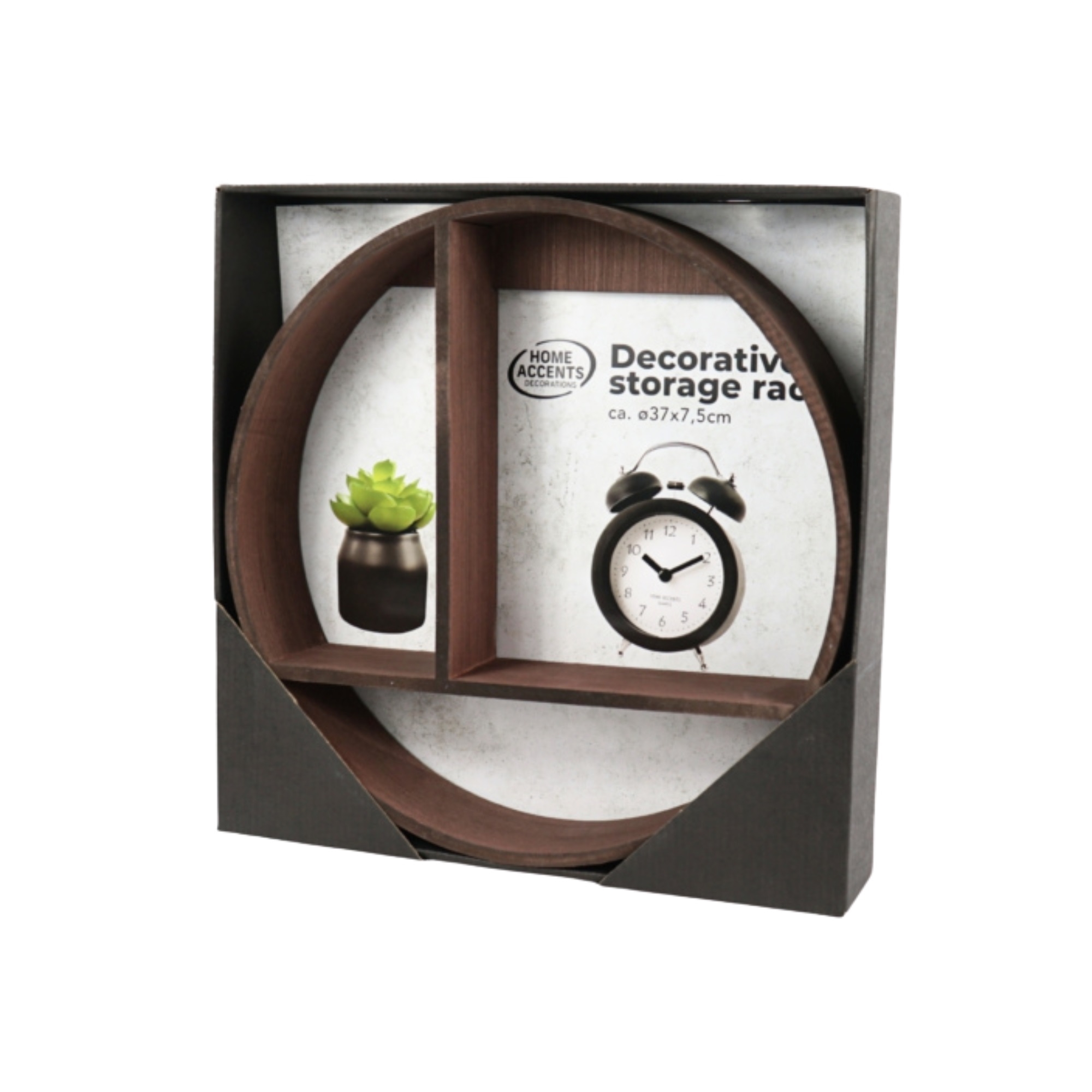 Med en størrelse på Ø37 cm og en dybde på 7,5 cm er hyllen ideell for små dekorasjoner, planter, bilder eller andre personlige elementer som fortjener en fin plass på veggen.