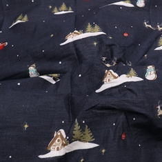 By Mats jule babysengetøy 70x100 cm - mørkeblå med julenisse og reinsdyr