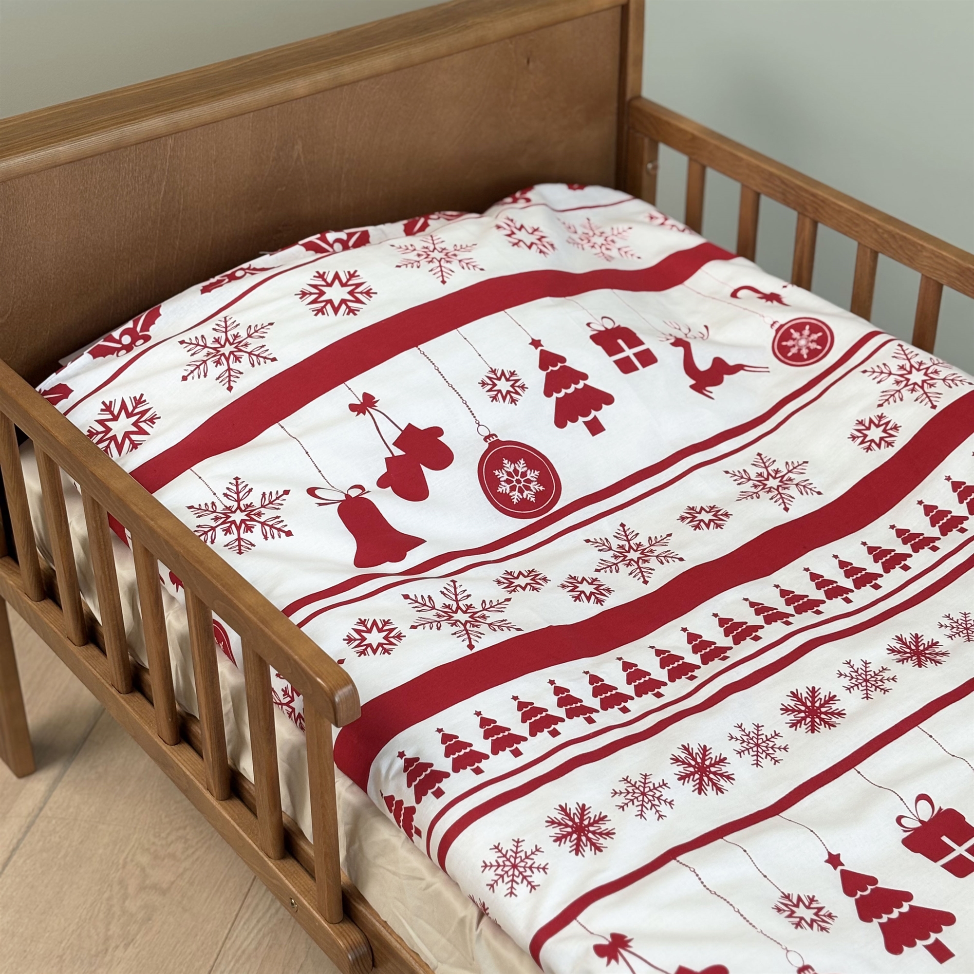 Forside »Sengetøy » Sengetøy til barn » Sengetøy til barn 140x200 cm Julesengetøy 140x200 cm - Jule sengesett med juleikoner - 100% bomulls sengetøy Spar69% Licens 799,00249,00NOKSpar 550,- På lager Trustpilot Antall Legg i kurv Se mer fra: Licens Artikkelnummer:2407-1 Les vår sengetøyguide Se vårt store utvalg av lagner Se vårt store utvalg av dyner 140x200 Har du spørsmål om produktet? Høy pusteevneMykt og deilig bomullOEKO-TEX® sertifisert Dynetrekk: 140x200 cm Putetrekk: 60x63 cm Materiale: 100% myk bomull Farge: Hvit og rød Design: Juleikoner Lukking: Dynetrekk med innvendige knapper, putetrekk med overlapp Vask: 60° Tørketrommel: Ja Tåler stryking: Ja Sertifisering: STANDARD 100 by OEKO-TEX®. Din garanti for at produktet er fri for helseskadelig kjemi. Et mykt sett jule sengetøy eller vintersengetøy med et fint design av juleikoner. Det myke sengesettet produsert i 100% bomull er både pustende og absorberende, og gir god sovekomfort. Bruk det fine sengesettet som en del av festlighetene i den kalde årstiden. Sengesettet har design med mange juleikoner som gaver, reinsdyr, juletre, snøfnugg og mye mer. Sengetøyet er perfekt for alle som elsker julen og som ønsker å gjøre litt ekstra ut av den koselige måneden. Sengesettet vil også være en utmerket gaveidé til adventskalenderen. Sengesettet er produsert i 100% myk bomull som gjør settet slitesterkt og med høy pusteevne. Den rene bomullskvaliteten gir et deilig og mykt sengesett som bidrar til å fremme sovekomfort for barnet. Bomullssengetøy kan vaskes ved 60° i vaskemaskin, noe som også bidrar til å opprettholde et høyt hygienisk nivå. Sengetøyet er i tillegg fremstilt med OEKO-TEX sertifisering, som er din garanti for at settet er fritt for skadelig kjemi. Gå på utkikk etter favorittene og mye mer i vårt store utvalg av tilbehør til barnerommet For barnet bør sengen være et trygt sted og alle elementene skal sammen skape myke og gode omgivelser for barnet å finne ro i. Bruk derfor gjerne barnets interesser for å skape et trygt soverom for barnet. Hos oss kan du finne et stort utvalg av tilbehør til sengen og barnerommet, fra laken til dyner, puter, sengetøy og mye mer, og masse produkter med alle barnas favoritter på. Alt sammen elementer som kan bidra til å skape det rette sovemiljøet og rommet for ditt barn. Her kan du finne deilige og myke kvalitetslaken Tilbake til Sengetøy til barn 140x200 cm