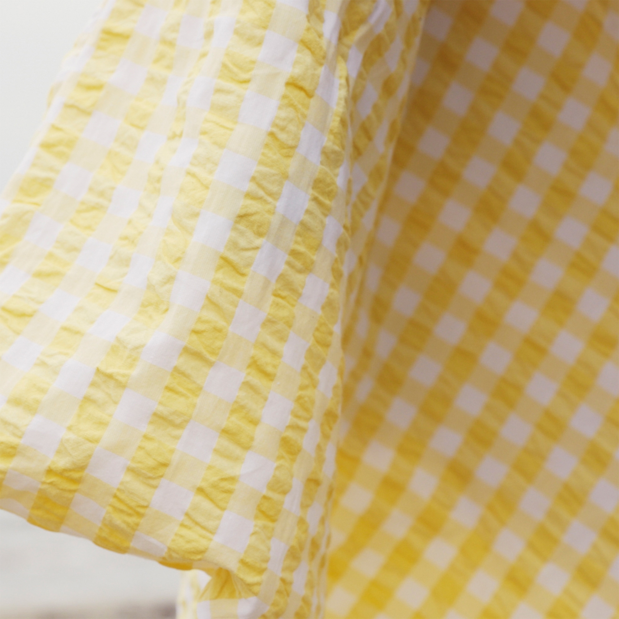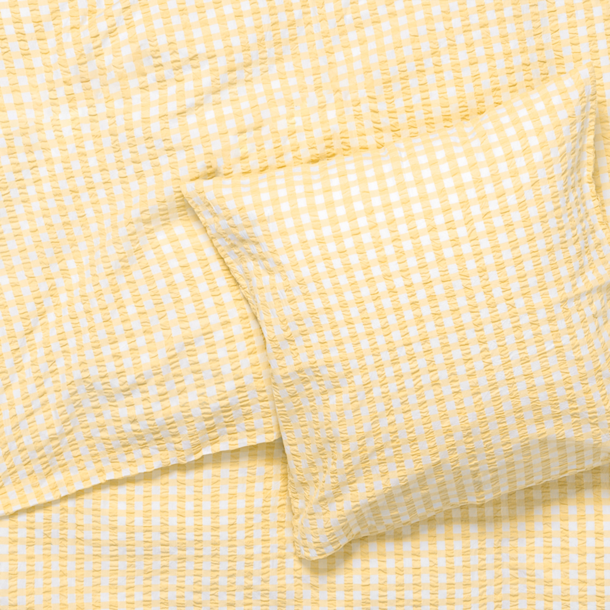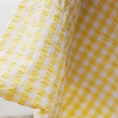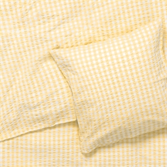 Den myke bomullen kombinert med den krøllete strukturen gir en unik følelse av luksus. Samtidig er sengetøyet praktisk i hverdagen, da det ikke krever stryking og holder sitt flotte uttrykk vask etter vask. De fine rutene i gul gir et rolig og stilrent uttrykk som passer inn i både moderne og klassiske soverom.