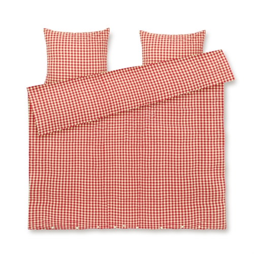 Den myke bomullen kombinert med den krøllete strukturen gir en unik følelse av luksus. Samtidig er sengetøyet praktisk i hverdagen, da det ikke krever stryking og holder sitt flotte uttrykk vask etter vask. De fine rutene i rødt gir et rolig og stilrent utseende som passer inn i både moderne og klassiske soverom.