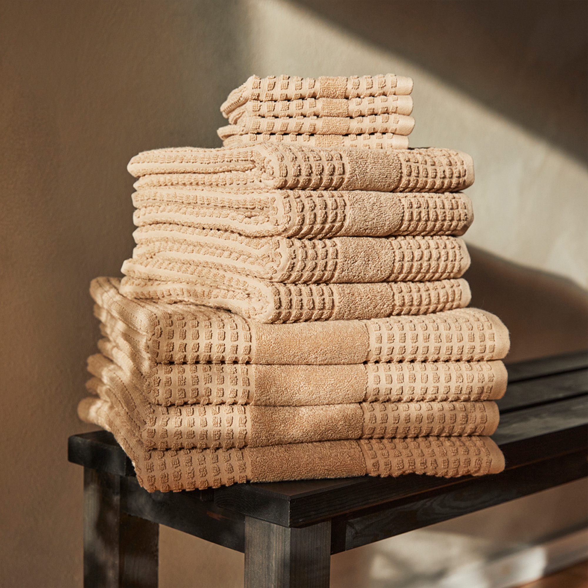 Unn deg luksus i hverdagen med dette vakre Check badehåndkleet fra JUNA. Den varme sandfargen og det diskrete firkantede mønsteret skaper et rolig og stilrent uttrykk som passer perfekt inn i det moderne baderommet.