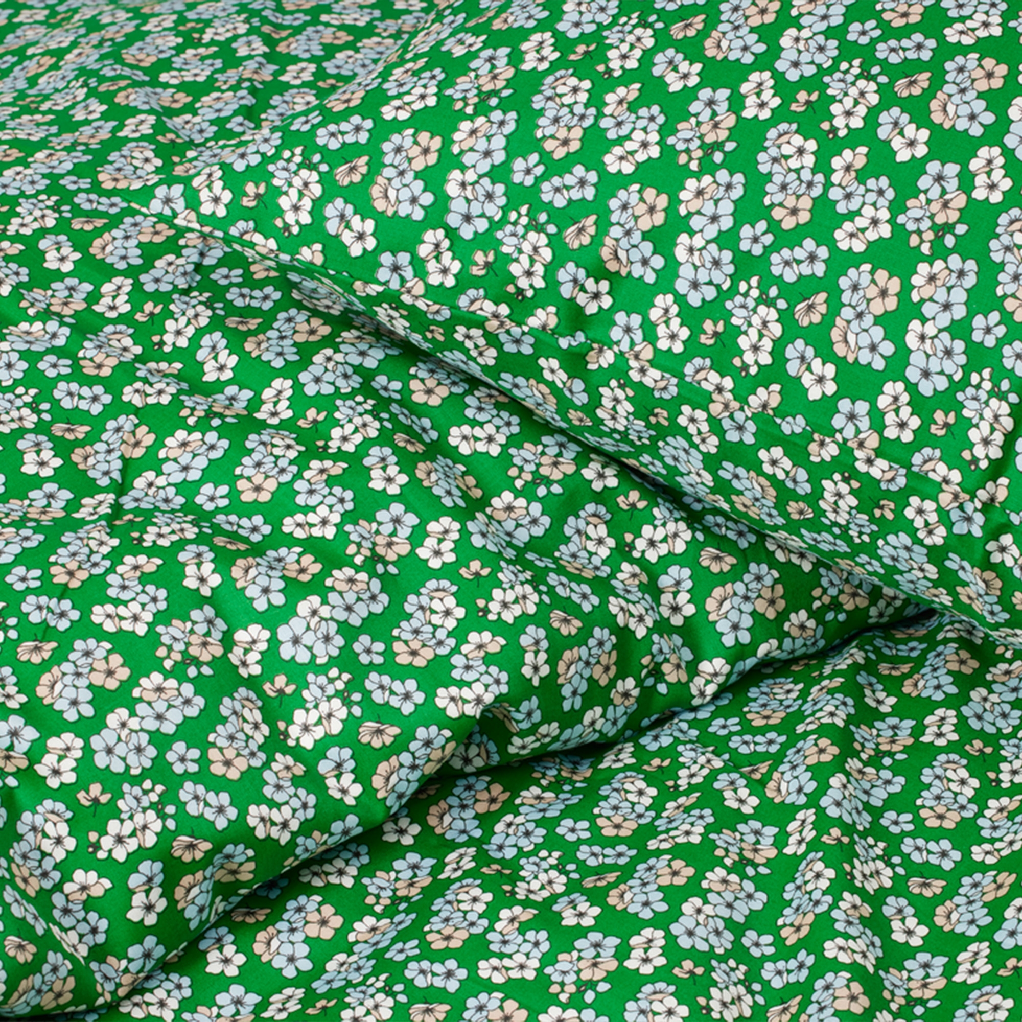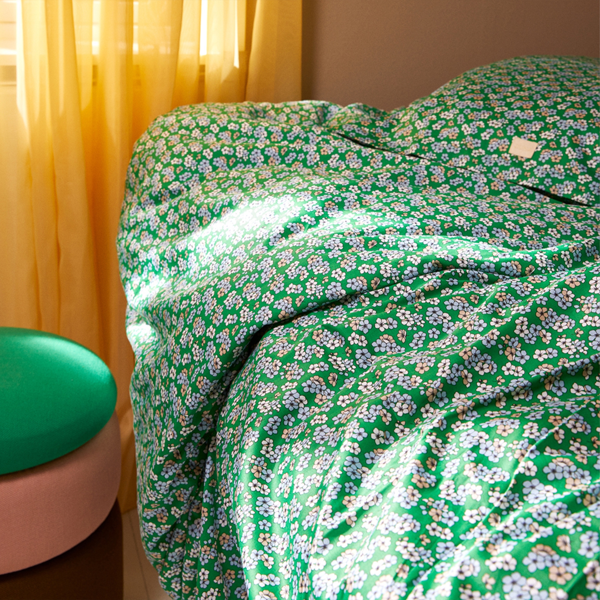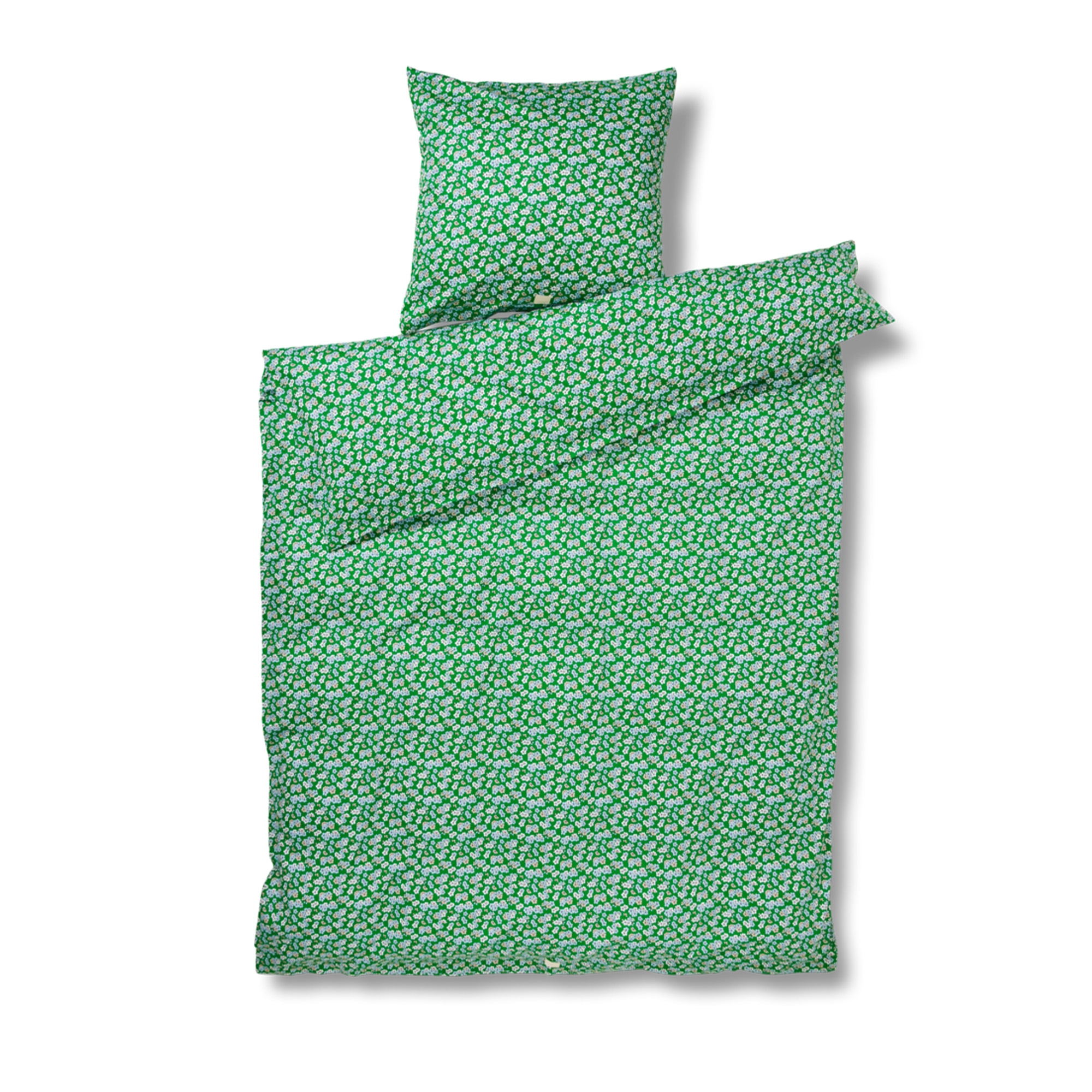 Forside »Sengetøy » Enkelt sengetøy » Enkelt sengetøy 140x200 cm JUNA sengetøy 140x200 cm - 100% økologisk bomullssatin - Pleasantly grønn med blomster JUNA Knallpris:749,00NOK På lager Trustpilot Antall Legg i kurv Se mer fra: JUNA Artikkelnummer:636022-1 Les vår sengetøyguide Se vårt store utvalg av sengetøy Se vårt store utvalg av dyner 140x200 Har du spørsmål om produktet? Pustende materiale som gir bedre søvnkomfort\r\nMyk kvalitet som føles behagelig å sove i\r\nHolder seg pent og mykt også etter mange vasker Dynetrekk: 140x200 cm\r\nPutetrekk: 60x63 cm\r\nMateriale: 100% økologisk bomullssatin\r\nFarge: Grønn med blomster\r\nSerie: Pleasantly\r\nMerke: Rosendahl - JUNA\r\nLukking: Dynetrekket lukkes med glidelås, putetrekket med overlapp\r\nVask: 60° \r\nTørketromling: Ja\r\nTåler stryking: Ja \r\n\r\nSertifisering: STANDARD 100 by OEKO-TEX®. Din garanti for at produktet er fritt for helseskadelig kjemi.\r\nSertifisering: GOTS-sertifisert (GOTS Organic Certified by Control Union CU1026087). Din garanti for økologisk tekstilproduksjon med fokus på miljø, ansvarlighet og frihet fra skadelig kjemi gjennom hele produksjonsprosessen. Sengetøy 140x200 cm - JUNA Pleasantly grønn med blomster\r\n\r\n\r\n Skap en frisk og harmonisk stemning på soverommet med dette vakre sengetøyet fra JUNA Pleasantly-serien. Det elegante blomsterprintet på en grønn bunn tilfører både liv og ro til innredningen din. Sengetøysettet er laget i 100% økologisk bomullssatin, som gir en silkemyk og glatt overflate med en lett glans. Materialet føles behagelig mot huden og sikrer en komfortabel nattesøvn natt etter natt.\r\n\r\n\r\n\r\n Bomullssatin er kjent for sin ekstra myke og glatte struktur, som gir en luksuriøs følelse og gjør det enda mer innbydende å krype under dynen. Det blomstrede designet i grønne nyanser skaper en naturlig og avslappende atmosfære på soverommet.\r\n\r\n\r\n\r\n Sengetøysettet er både GOTS-sertifisert og OEKO-TEX®-sertifisert, noe som sikrer at det er produsert med omtanke for både miljø og helse. Dynetrekket lukkes med glidelås, mens putetrekket har overlapp, noe som gjør det raskt og enkelt å skifte sengetøy.\r\n\r\n\r\nSe hele utvalget av sengetøy her\r\n\r\nJUNA - Rosendahl\r\n\r\n\r\n JUNA er en del av Rosendahl Design Group og representerer boligtekstiler med fokus på både estetikk, kvalitet og ansvarlig produksjon. Merket kombinerer klassisk skandinavisk design med moderne trender og skaper tekstiler som tilfører personlighet og varme i hjemmet. JUNA er særlig kjent for sitt fargerike og lekne univers, hvor mønstre, striper og grafiske uttrykk går hånd i hånd med myke materialer og høy komfort. Med et sterkt fokus på miljøet bruker JUNA sertifiserte materialer og ansvarlige produksjonsmetoder, slik at du kan velge tekstiler med omtanke. \r\n\r\n\r\nSe hele utvalget fra JUNA her Tilbake til Enkelt sengetøy 140x200 cm