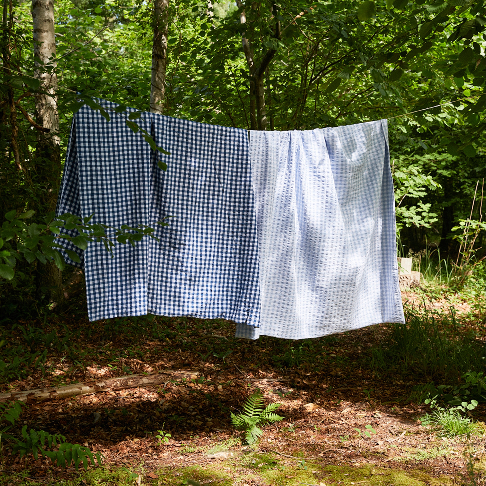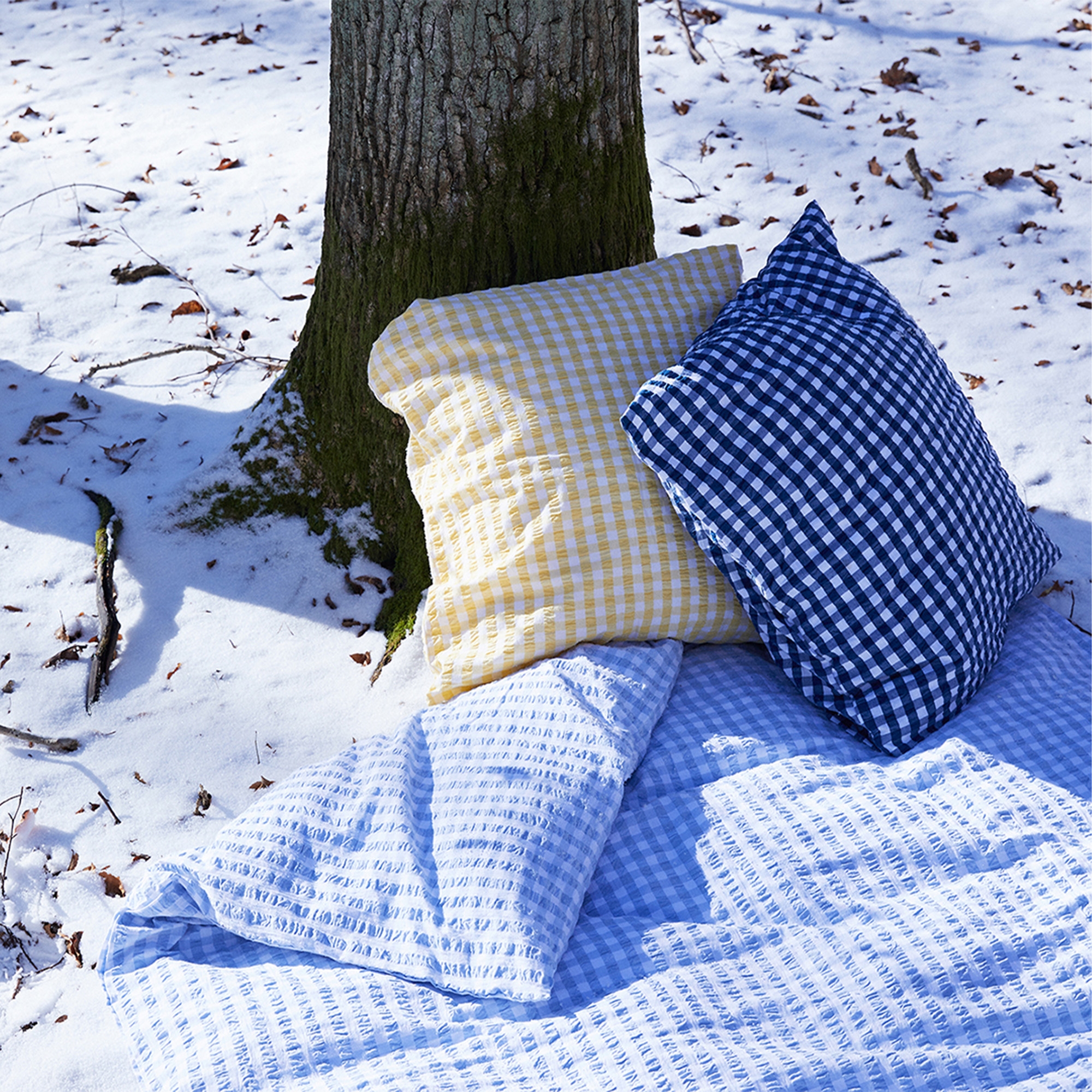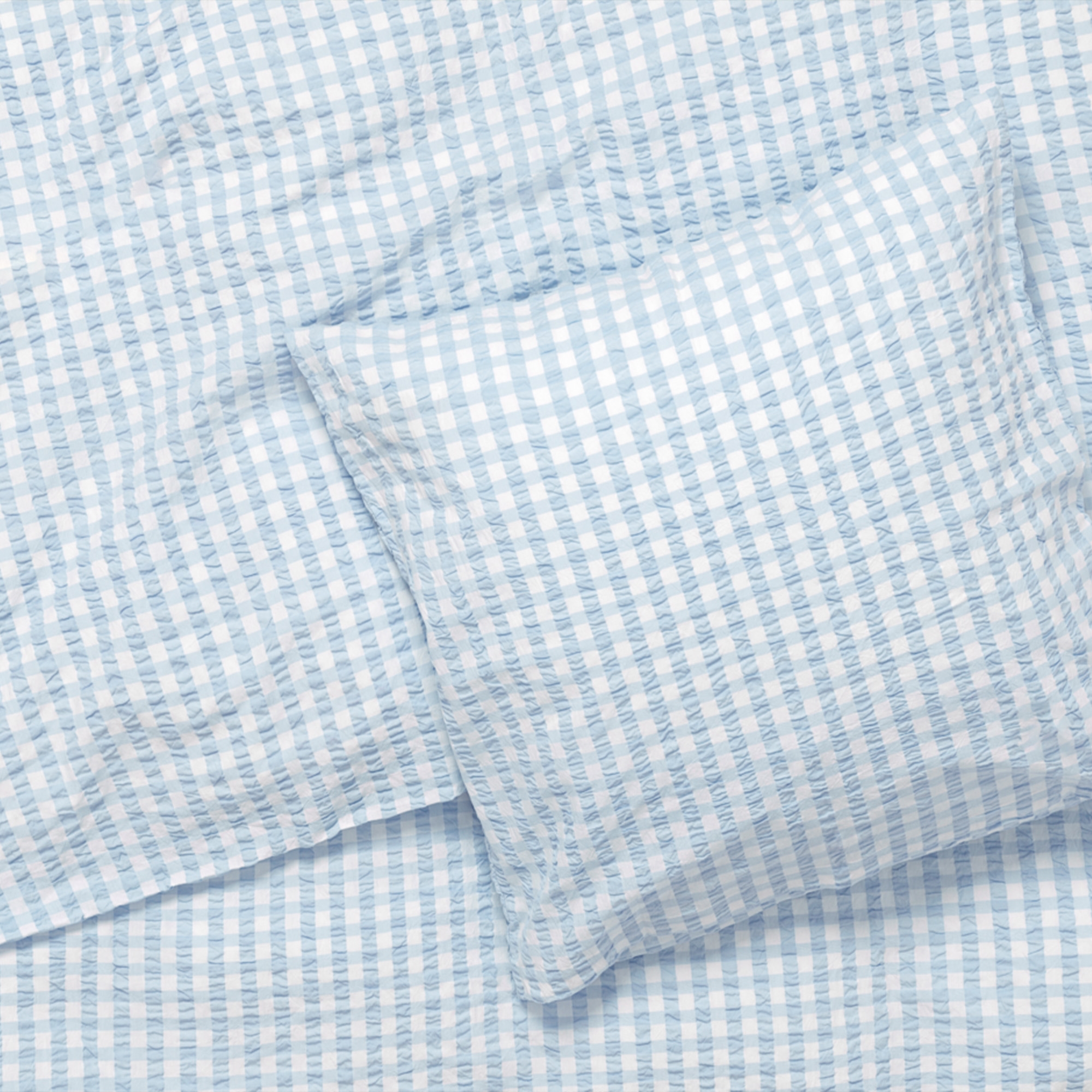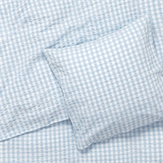 Den myke bomullen kombinert med den krøllede strukturen gir en unik følelse av luksus. Samtidig er sengetøyet praktisk i hverdagen, da det ikke krever stryking og beholder sitt flotte uttrykk vask etter vask. De fine rutene i lyseblå gir et rolig og stilrent uttrykk som passer både moderne og klassiske soverom.