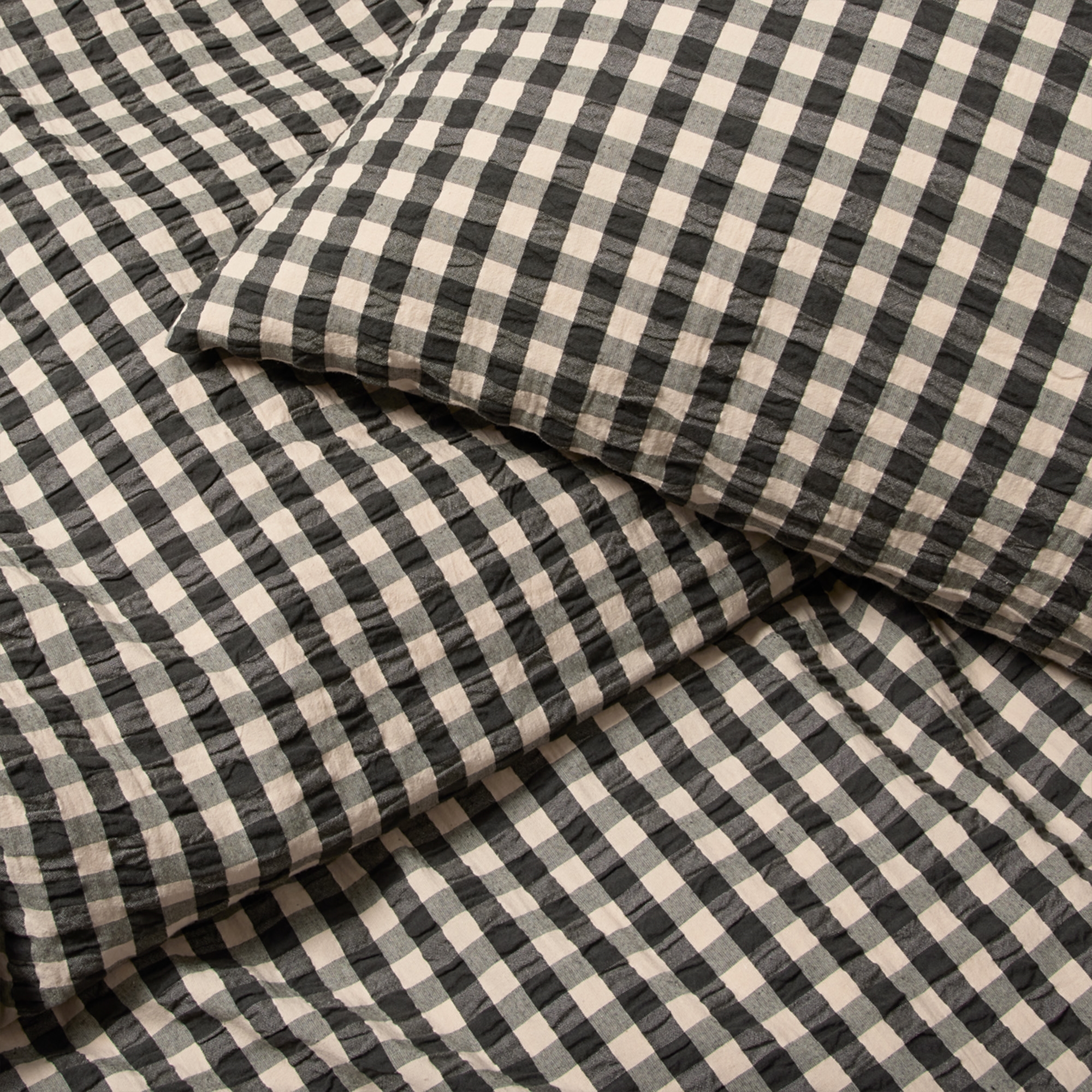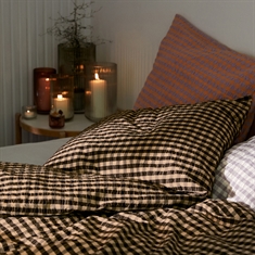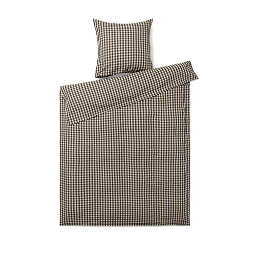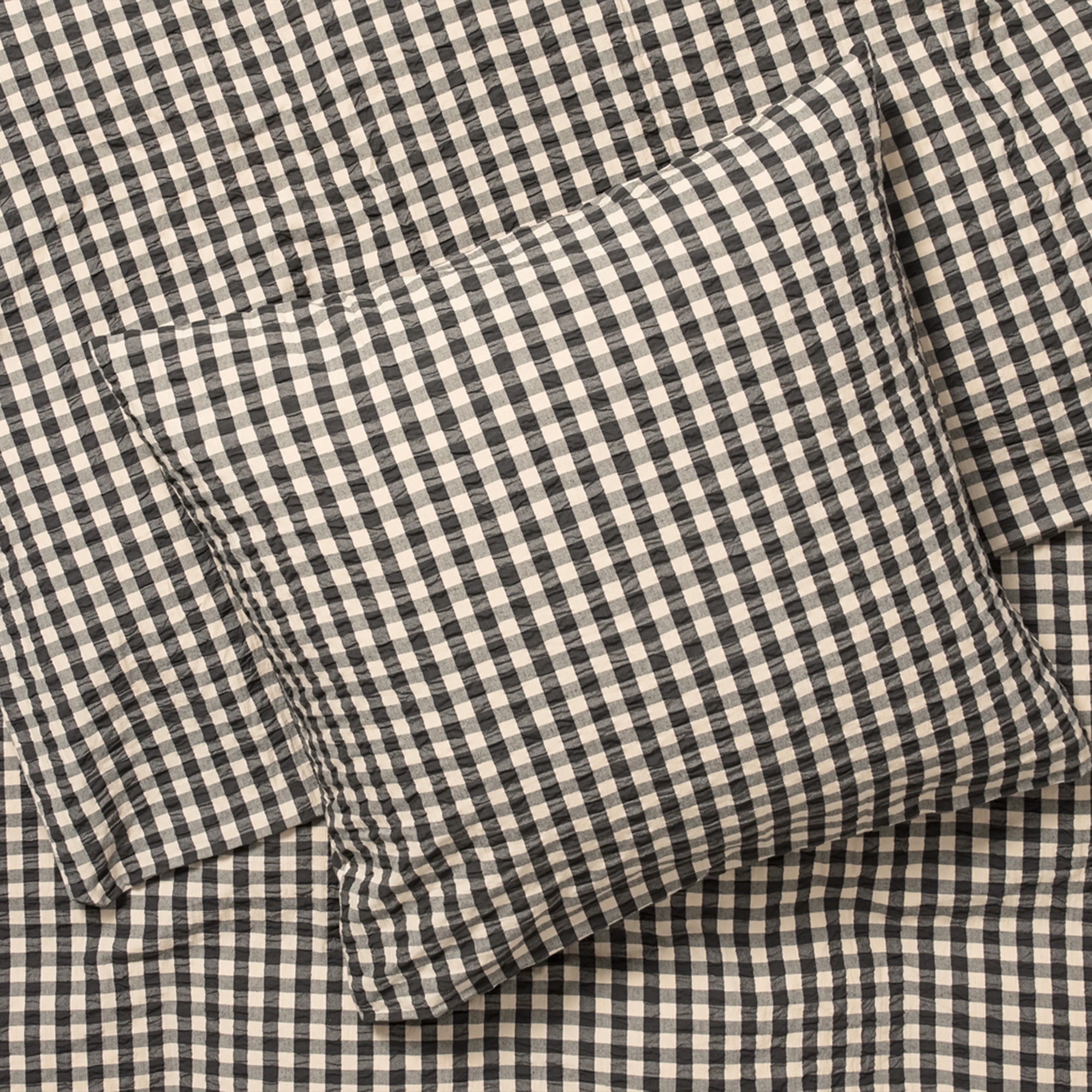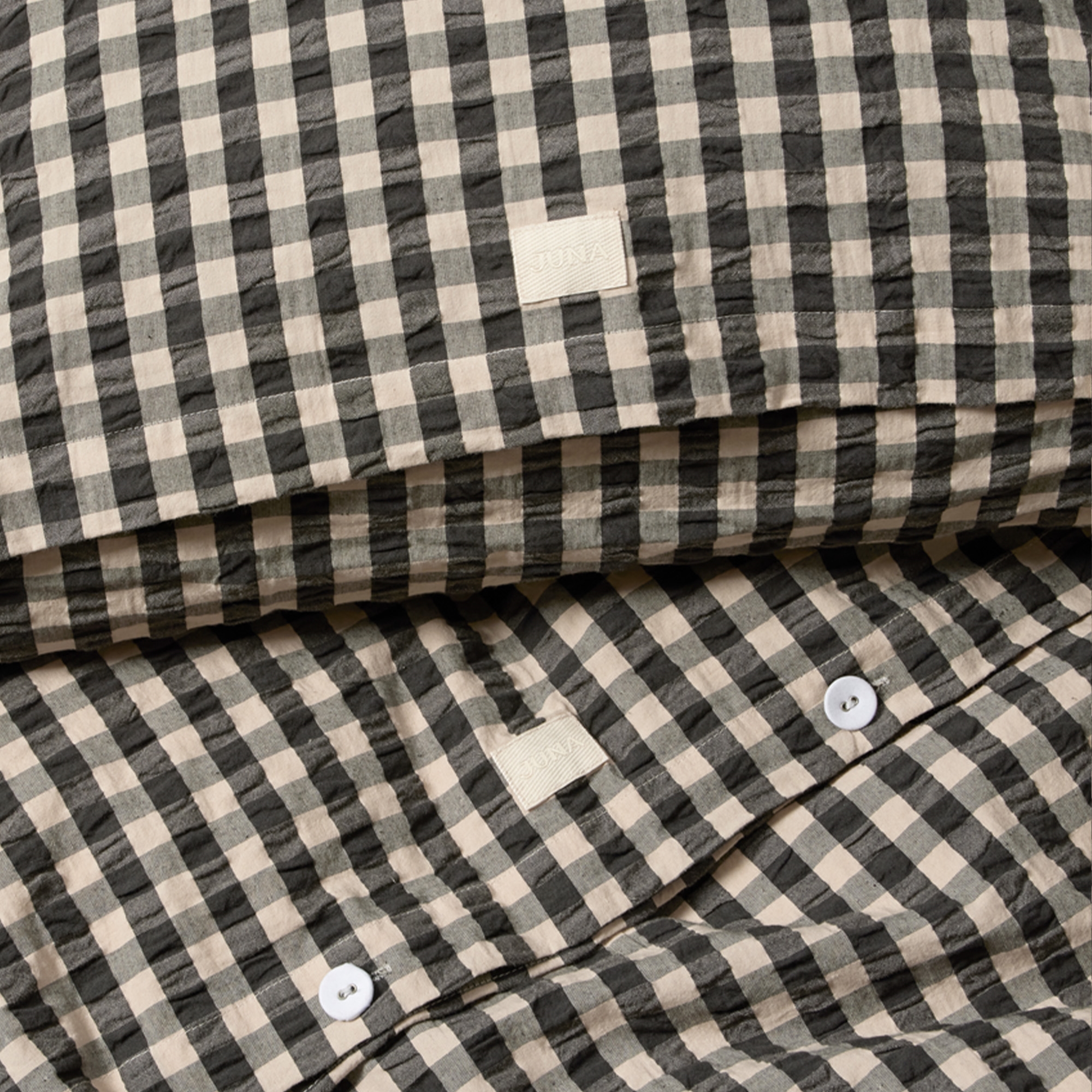 Den myke bomullen kombinert med den krøllete strukturen gir en unik følelse av luksus. Samtidig er sengetøyet praktisk i hverdagen, da det ikke krever stryking og holder sitt flotte uttrykk vask etter vask. De fine rutene i svart gir et rolig og stilrent uttrykk som passer inn i både moderne og klassiske soverom.