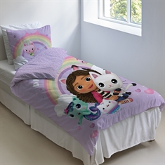 Forside »Sengetøy » Sengetøy til barn » Junior sengetøy 100x140 cm Junior sengesett 100x140 cm - Vendbart sengetøy med Gabby's Dollhouse og regnbue - 100% bomulls sengetøy Spar50% Licens 499,00249,00NOKSpar 250,- På lager Trustpilot Antall Legg i kurv Se mer fra: Licens Artikkelnummer:22236-8 Les vår sengetøyguide Se vårt store utvalg av laken Se vårt store utvalg av dyner 100x140 Har du spørsmål om produktet? Høy pusteevne100% myk bomullOEKO-TEX® sertifisert Dynetrekk: 100x140 cm - junior sengesett Putetrekk: 40x45 cm Materiale: 100% myk bomull Farge: Lilla Motiv: Gabby's Dollhouse & regnbue Design: Vendbart - Forside med motiv av Gabby og vennene, bakside med all-over print av regnbuer Lukking: Dyne med knapper og putetrekk med overlapp Vask: 60° Tørketrommel: Ja Tåler stryking: Ja Sertifisering: STANDARD 100 by OEKO-TEX® (2023OK2234 AITEX). Din garanti for at produktet er fritt for helseskadelig kjemi. Mykt junior sengetøy i 100% bomull, med design av Gabby og vennene fra Gabby's Dollhouse. Produsert med lette og pustende bomullstråder som gir sengesettet en følelse av mykhet, som gjør at dynen føles deilig for barnet å sove med. Balansen i naturlige egenskaper og komfort fra det myke materialet, kombinert med det koselige designet, gjør dette settet til en sikker favoritt hos barnet ditt. En ekte Gabby's Dollhouse-fan vil elske dette settet med sengetøy. Sengetøyet har et vendbart design. På forsiden sees Gabby, hennes venner og teksten "Dream It Up", med en bakgrunn av en flott regnbue, og på baksiden er det bittesmå motiver av regnbuer. Sengesettet er produsert i 100% bomull som gjør settet slitesterkt, mykt og gir høy absorpsjon samt pusteevne. Den rene bomullskvaliteten gir et lekkert og mykt sengesett, som i tillegg er lett å vedlikeholde og skaper et deilig sovemiljø for barnet ditt. Bomullssengetøy kan vaskes ved 60° i vaskemaskin, noe som også bidrar til å opprettholde et høyt hygienisk nivå. Sengetøyet er i tillegg fremstilt med OEKO-TEX-sertifisering, som er din garanti for at settet er fritt for skadelig kjemi. Gå på utkikk etter favorittene og mye mer i vårt store utvalg av tilbehør til barneuniverset For barnet bør sengen være et trygt sted og alle elementene skal sammen skape myke og deilige omgivelser for barnet å finne ro i. Bruk derfor gjerne barnets interesser for å skape et trygt soverom for barnet. Hos oss kan du finne et stort utvalg av tilbehør til sengen og barnerommet, fra laken til dyner, puter, sengetøy og mye mer, og masse produkter med alle barnas favoritter på. Alt sammen elementer som kan bidra til å skape det rette sovemiljøet og rommet for barnet ditt. Her kan du finne deilige og myke kvalitetslaken Tilbake til Junior sengetøy 100x140 cm Du kan også være interessert i: Junior sengetøy 100x140 cm - Mykt hvitt sengesett i 100% egyptisk bomullssatin - Turiform sengetøyHøy kvalitet Ekstra fin, myk & pustende Jacquardvevd 799,00 NOK485,00 NOK Formsydd laken 70x140 cm - Hvit - 100% ekstra fin bomullssateng - Formsydd laken til juniormadrassFormsydd laken - Hvit 100% bomullssateng 70x140x15 cm Veiledende utsalgspris : 434,00 Spar : 35,00 599,00 NOK399,00 NOK Madrassbeskytter junior - 70x140 cm - Kokesikker bomull - Borg LivingPustende og allergivennlig Myk bomull OEKO-TEX®-sertifisert Veiledende utsalgspris : 434,00 Spar : 85,00 599,00 NOK349,00 NOK Juniordyne - Moskusdun - 100x140 cm - Helårs juniordyne - Borg Living dundyne100 % moskusdundyne Bæreevne: over 12 Helårsdyne Veiledende utsalgspris : 1.594,00 Spar : 609,00 2.599,00 NOK985,00 NOK