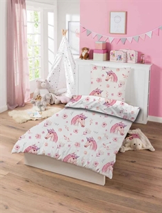 Forside »Sengetøy » Sengetøy til barn » Junior sengetøy 100x140 cm Junior sengetøy 100x140 cm - Enhjørning med blomster - 2 i 1 design - 100% bomull barne sengetøy Spar50% Licens 499,00249,00NOKSpar 250,- På lager Trustpilot Antall Legg i kurv Se mer fra: Licens Artikkelnummer:99270-8 Les vår sengetøyguide Se vårt store utvalg av lagner Se vårt store utvalg av dyner 100x140 Har du spørsmål om produktet? Høy pusteevne100% myk bomullOEKO-TEX® sertifisert Dynetrekk: 100x140 cm - junior sengetøy Putetrekk: 40x45 cm Materiale: 100% myk bomull Farge: Hvit og lyserosa Motiv: Enhjørning og blomster Lukking: Dyne med knapper, putetrekk med overlapp Vask: 60° Tørketrommel: Ja Tåler stryking: Ja Sertifisering: STANDARD 100 by OEKO-TEX® (2018OK1545). Din garanti for at produktet er fritt for helseskadelig kjemi. Et fint sengetøy med enhjørninger til den lille fan. Sengetøyet er produsert i 100% bomull, og er deilig mykt å sove med. Bomullssengetøyet er pustende og absorberende, slik at det bidrar til å skape den best mulige rammen rundt barnets søvntid. De fleste små barn elsker de magiske enhjørningene. De søte skapningene utstråler den søteste magi i en eventyrlig verden. Dette sengetøyet er absolutt intet unntak. Sengetøyet har et veldig fint all-over print av en søt enhjørning med blomsterkrans på hodet. Sengetøyet er produsert i 100% bomull som gjør settet slitesterkt, mykt og gir høy absorpsjon samt pusteevne. Den rene bomullskvaliteten gir et lekkert og mykt sengetøy, som i tillegg er lett å vedlikeholde og skaper et deilig sovemiljø for ditt barn. Se vårt store utvalg av Gurli Gris produkter For barnet bør sengen være et trygt sted og alle elementene skal sammen skape myke og deilige omgivelser for barnet å finne ro i. Bruk derfor gjerne barnets interesser for å skape et trygt soverom for barnet. Hos oss kan du finne et stort utvalg av tilbehør til sengen og barnerommet, alt fra lagner til dyner, puter, sengetøy og mye mer, og masse produkter med alle barnas favoritter på. Alt sammen elementer som kan bidra til å skape det rette sovemiljøet og rommet for ditt barn. Her kan du finne deilige og myke kvalitetslagner til barn Tilbake til Junior sengetøy 100x140 cm