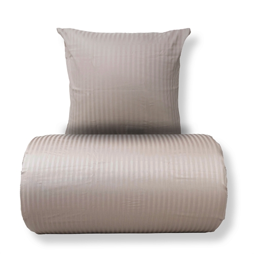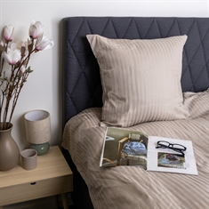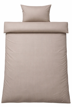 Skap trygge og behagelige rammer for barnets søvn med dette eksklusive junior sengesettet i 100 % bomullssatin fra Borg Living. Sengetøyet er jacquardvevd med diskrete, ensfargede sandfargede striper som gir et rolig og tidløst uttrykk – perfekt til både jente- og gutterommet.