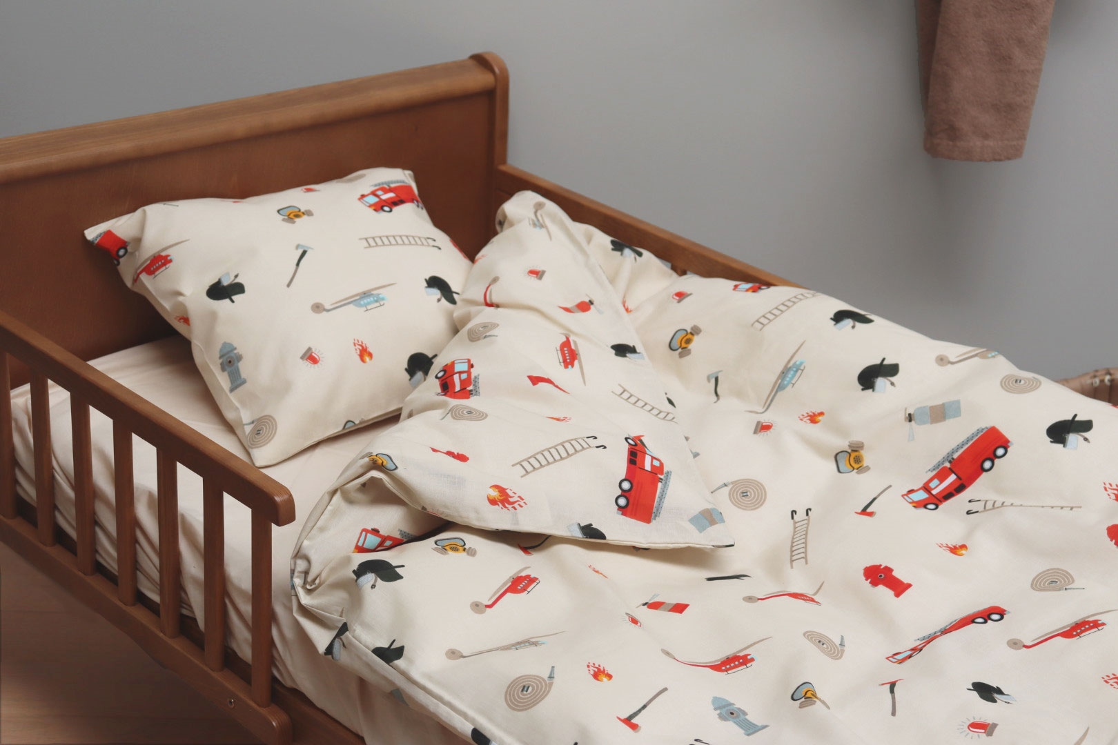 Forside »Sengetøy » Sengetøy til barn » Junior sengetøy 100x140 cm Junior sengetøy 100x140 cm - Beige sengesett med brannvesen ikoner - 100% mykt bomulls sengetøy Spar34% By Mats 349,00229,00NOKSpar 120,- På lager Trustpilot Antall Legg i kurv Se mer fra: By Mats Artikkelnummer:121010-8 Les vår sengetøyguide Se vårt store utvalg av konvoluttlaken Se vårt store utvalg av dyner 100x140 Har du spørsmål om produktet? Høy pusteevne100% myk bomullOEKO-TEX® sertifisert Dynetrekk: 100x140 cm - junior sengesett Putetrekk: 40x45 cm Materiale: 100% myk bomull Farge: Beige Motiv: Brannvesen ikoner Lukking: Dyne med knapper og putetrekk med overlapp Vask: 60° Tørketromling: Ja Tåler stryking: Ja Sertifisering: STANDARD 100 by OEKO-TEX® (2016OK0709 AITEX). Din garanti for at produktet er fritt for helseskadelig kjemi. Mykt junior sengetøy i 100% bomull, med brannvesen motiver. Produsert med lette og pustende bomullstråder som gir sengesettet en følelse av mykhet, som gjør at dynen føles deilig for barnet å sove med. Balansen i naturlige egenskaper og komfort fra det myke materialet, kombinert med det koselige designet, gjør dette settet til en sikker favoritt hos barnet ditt. Flott junior sengesett med all-over print av brannvesen ikoner, som ikke bare er mykt og behagelig, men også vil pynte og være dekorativt på barnerommet. Sengsettet er produsert i 100% bomull som gjør settet slitesterkt, mykt og gir høy absorbering samt pusteevne. Den rene bomullskvaliteten gir et lekkert og mykt sengesett, som i tillegg er lett å vedlikeholde og skaper et deilig sovemiljø for barnet ditt. Bomullssengetøy kan vaskes ved 60° i vaskemaskin, noe som også bidrar til å opprettholde et høyt hygienisk nivå. Sengetøyet er i tillegg fremstilt med OEKO-TEX sertifisering, som er din garanti for at settet er fritt for skadelig kjemi. Gå på utkikk etter favorittene og mye mer, i vårt store utvalg av tilbehør til barneuniverset For barnet bør sengen være et trygt sted og alle elementene skal sammen skape myke og deilige omgivelser for barnet å finne ro i. Bruk derfor gjerne barnets interesser for å skape et trygt soverom for barnet. Hos oss kan du finne et stort utvalg av tilbehør til sengen og barnerommet, fra konvoluttlaken til dyner, puter, sengetøy og mye mer, og masse produkter med alle barnas favoritter på. Alt sammen elementer som kan bidra til å skape det rette sovemiljø og rom for barnet ditt. Her kan du finne lekre og myke kvalitets konvoluttlaken Tilbake til Junior sengetøy 100x140 cm Du kan også være interessert i: Junior sengetøy 100x140 cm - Mykt hvitt sengesett i 100% egyptisk bomullssatin - Turiform sengetøyHøy kvalitet Ekstra fin, myk & pustende Jacquardvevd 799,00 NOK485,00 NOK Formsydd laken 70x140 cm - Hvit - 100% ekstra fin bomullssateng - Formsydd laken til juniormadrassFormsydd laken - Hvit 100% bomullssateng 70x140x15 cm Veiledende utsalgspris : 434,00 Spar : 35,00 599,00 NOK399,00 NOK Madrassbeskytter junior - 70x140 cm - Kokesikker bomull - Borg LivingPustende og allergivennlig Myk bomull OEKO-TEX®-sertifisert Veiledende utsalgspris : 434,00 Spar : 85,00 599,00 NOK349,00 NOK Juniordyne - Moskusdun - 100x140 cm - Helårs juniordyne - Borg Living dundyne100 % moskusdundyne Bæreevne: over 12 Helårsdyne Veiledende utsalgspris : 1.594,00 Spar : 609,00 2.599,00 NOK985,00 NOK
