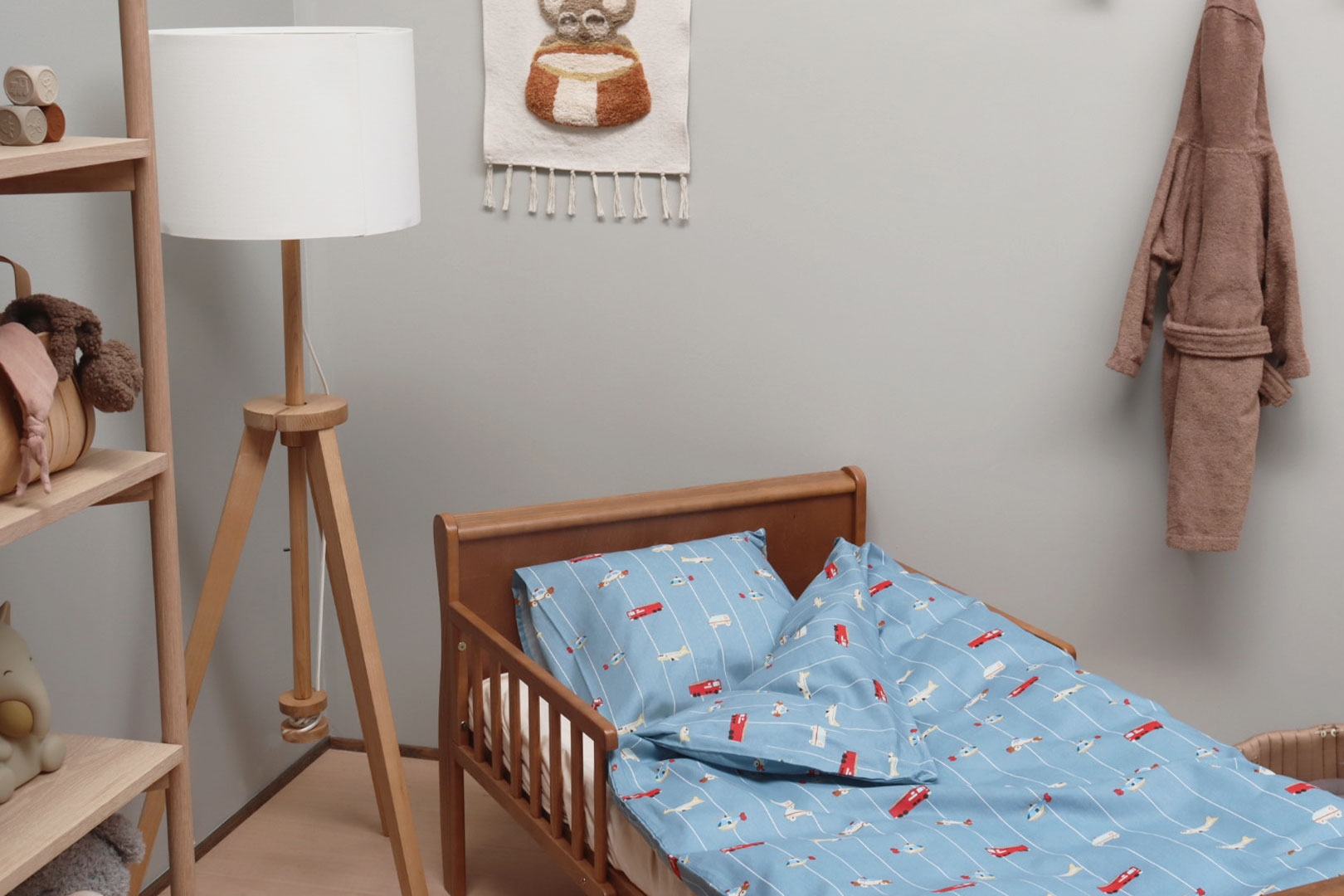 Forside »Sengetøy » Sengetøy til barn » Junior sengetøy 100x140 cm Junior sengetøy 100x140 cm - Blått sengesett med biler og fly - 100% mykt bomulls sengetøy Spar34% By Mats 349,00229,00NOKSpar 120,- På lager Trustpilot Antall Legg i kurv Se mer fra: By Mats Artikkelnummer:12116-8 Les vår sengetøyguide Se vårt store utvalg av lagner Se vårt store utvalg av dyner 100x140 Har du spørsmål om produktet? Høy pusteevne100% myk bomullOEKO-TEX® sertifisert Dynetrekk: 100x140 cm - junior sengesett Putetrekk: 40x45 cm Materiale: 100% myk bomull Farge: Blå Motiv: Stripet med biler og fly Lukking: Dyne med knapper og putetrekk med overlapp Vask: 60° Tørketrommel: Ja Tåler stryking: Ja Sertifisering: STANDARD 100 by OEKO-TEX® (2016OK0709 AITEX). Din garanti for at produktet er fritt for helseskadelig kjemi. Mykt junior sengetøy i 100% bomull, med biler og fly. Produsert med lette og pustende bomullstråder som gir sengesettet en følelse av mykhet, som gjør at dynen føles behagelig for barnet å sove med. Balansen mellom naturlige egenskaper og komfort fra det myke materialet, kombinert med det koselige designet, gjør dette settet til en sikker favoritt hos barnet ditt. Flott stripet junior sengesett med et heltrykk av biler og fly, som ikke bare er mykt og behagelig, men også pynter og er dekorativt på barnerommet. Sengsettet er produsert i 100% bomull som gjør settet slitesterkt, mykt og gir høy absorbering samt pusteevne. Den rene bomullskvaliteten gir et lekkert og mykt sengesett, som i tillegg er lett å vedlikeholde og skaper et deilig sovemiljø for barnet ditt. Bomullssengetøy kan vaskes på 60° i vaskemaskin, noe som også bidrar til å opprettholde et høyt hygienisk nivå. Sengetøyet er i tillegg fremstilt med OEKO-TEX sertifisering, som er din garanti for at settet er fritt for skadelig kjemi. Gå på utkikk etter favorittene og mye mer i vårt store utvalg av tilbehør til barneuniverset For barnet bør sengen være et trygt sted og alle elementene skal sammen skape myke og gode omgivelser for barnet å finne ro i. Bruk derfor gjerne barnets interesser for å skape et trygt soverom for barnet. Hos oss kan du finne et stort utvalg av tilbehør til sengen og barnerommet, fra lagner til dyner, puter, sengetøy og mye mer, og masse produkter med alle barnas favoritter på. Alt sammen elementer som kan bidra til å skape det rette sovemiljøet og rommet for barnet ditt. Her kan du finne deilige og myke kvalitetslagner Tilbake til Junior sengetøy 100x140 cm Du kan også være interessert i: Junior sengetøy 100x140 cm - Mykt hvitt sengesett i 100% egyptisk bomullssatin - Turiform sengetøyHøy kvalitet Ekstra fin, myk & pustende Jacquardvevd 799,00 NOK485,00 NOK Formsydd laken 70x140 cm - Hvit - 100% ekstra fin bomullssateng - Formsydd laken til juniormadrassFormsydd laken - Hvit 100% bomullssateng 70x140x15 cm Veiledende utsalgspris : 434,00 Spar : 35,00 599,00 NOK399,00 NOK Madrassbeskytter junior - 70x140 cm - Kokesikker bomull - Borg LivingPustende og allergivennlig Myk bomull OEKO-TEX®-sertifisert Veiledende utsalgspris : 434,00 Spar : 85,00 599,00 NOK349,00 NOK Juniordyne - Moskusdun - 100x140 cm - Helårs juniordyne - Borg Living dundyne100 % moskusdundyne Bæreevne: over 12 Helårsdyne Veiledende utsalgspris : 1.594,00 Spar : 609,00 2.599,00 NOK985,00 NOK