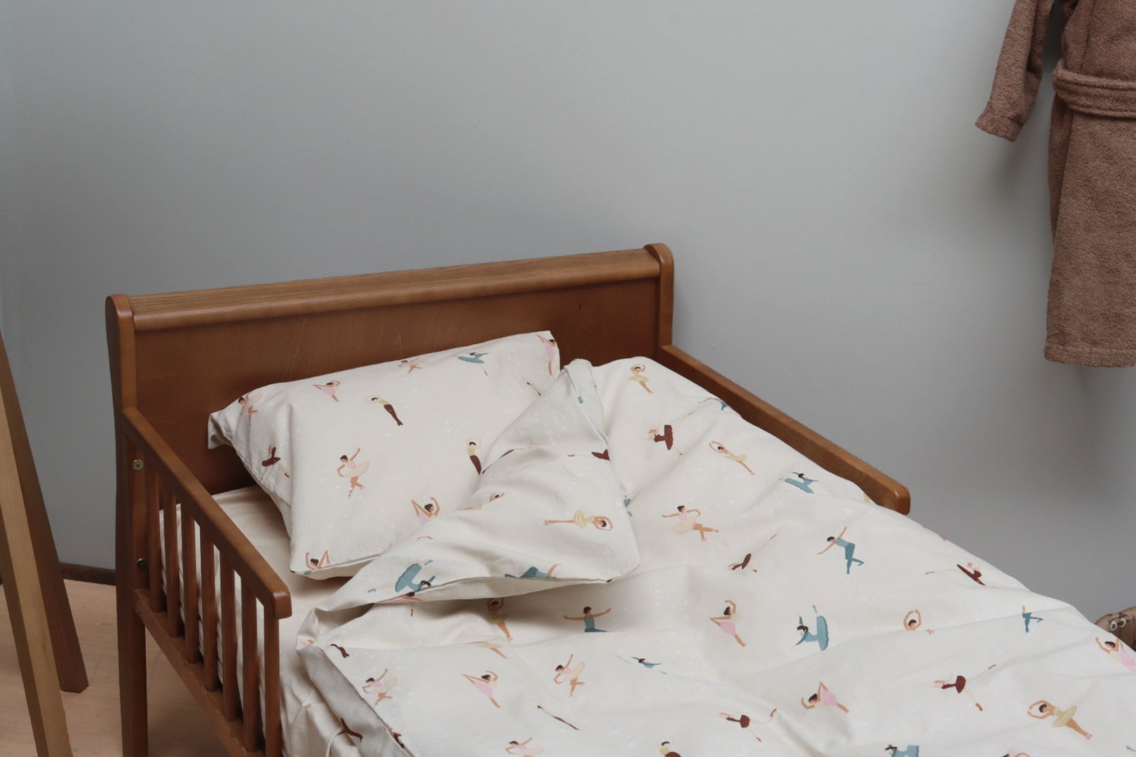 Forside »Sengetøy » Sengetøy til barn » Junior sengetøy 100x140 cm Junior sengetøy 100x140 cm - Hvitt sengesett med ballerinaer - 100% mykt bomulls sengetøy Spar34% By Mats 349,00229,00NOKSpar 120,- På lager Trustpilot Antall Legg i kurv Se mer fra: By Mats Artikkelnummer:12124-8 Les vår sengetøyguide Se vårt store utvalg av laken Se vårt store utvalg av dyner 100x140 Har du spørsmål om produktet? Høy pusteevne100% myk bomullOEKO-TEX® sertifisert Dynetrekk: 100x140 cm - junior sengesett Putetrekk: 40x45 cm Materiale: 100% myk bomull Farge: Hvit Motiv: Ballerinaer Lukking: Dyne med knapper og putetrekk med overlapp Vask: 60° Tørketrommel: Ja Tåler stryking: Ja Sertifisering: STANDARD 100 by OEKO-TEX® (2016OK0709 AITEX). Din garanti for at produktet er fritt for helseskadelig kjemi. Mykt junior sengetøy i 100% bomull, med ballettdansere. Produsert med lette og pustende bomullstråder som gir sengesettet en følelse av mykhet, som gjør at dynen føles deilig for barnet å sove med. Balansen mellom naturlige egenskaper og komfort fra det myke materialet, kombinert med det koselige designet, gjør dette settet til en sikker favoritt hos barnet ditt. Flott junior sengesett med et all-over print av ballerinaer, som ikke bare er mykt og behagelig, men også vil pynte og være dekorativt på barnerommet. Sengsettet er produsert i 100% bomull som gjør settet slitesterkt, mykt og gir høy absorbering samt pusteevne. Den rene bomullskvaliteten gir et lekkert og mykt sengesett, som i tillegg er lett å vedlikeholde og skaper et deilig sovemiljø for barnet ditt. Bomullssengetøy kan vaskes ved 60° i vaskemaskinen, noe som også bidrar til å opprettholde et høyt hygienisk nivå. Sengetøyet er i tillegg fremstilt med OEKO-TEX sertifisering, som er din garanti for at settet er fritt for skadelig kjemi. Gå på utkikk etter favorittene og mye mer, i vårt store utvalg av tilbehør til barneuniverset For barnet bør sengen være et trygt sted og alle elementene skal sammen skape myke og deilige omgivelser for barnet å finne ro i. Bruk derfor gjerne barnets interesser for å skape et trygt soverom for barnet. Hos oss kan du finne et stort utvalg av tilbehør til sengen og barnerommet, fra laken til dyner, puter, sengetøy og mye mer, og masse produkter med alle barnas favoritter på. Alt sammen elementer som kan være med på å skape det rette sovemiljøet og rommet for barnet ditt. Her kan du finne deilige og myke kvalitetslaken Tilbake til Junior sengetøy 100x140 cm Du kan også være interessert i: Junior sengetøy 100x140 cm - Mykt hvitt sengesett i 100% egyptisk bomullssatin - Turiform sengetøyHøy kvalitet Ekstra fin, myk & pustende Jacquardvevd 799,00 NOK485,00 NOK Formsydd laken 70x140 cm - Hvit - 100% ekstra fin bomullssateng - Formsydd laken til juniormadrassFormsydd laken - Hvit 100% bomullssateng 70x140x15 cm Veiledende utsalgspris : 434,00 Spar : 35,00 599,00 NOK399,00 NOK Madrassbeskytter junior - 70x140 cm - Kokesikker bomull - Borg LivingPustende og allergivennlig Myk bomull OEKO-TEX®-sertifisert Veiledende utsalgspris : 434,00 Spar : 85,00 599,00 NOK349,00 NOK Juniordyne - Moskusdun - 100x140 cm - Helårs juniordyne - Borg Living dundyne100 % moskusdundyne Bæreevne: over 12 Helårsdyne Veiledende utsalgspris : 1.594,00 Spar : 609,00 2.599,00 NOK985,00 NOK