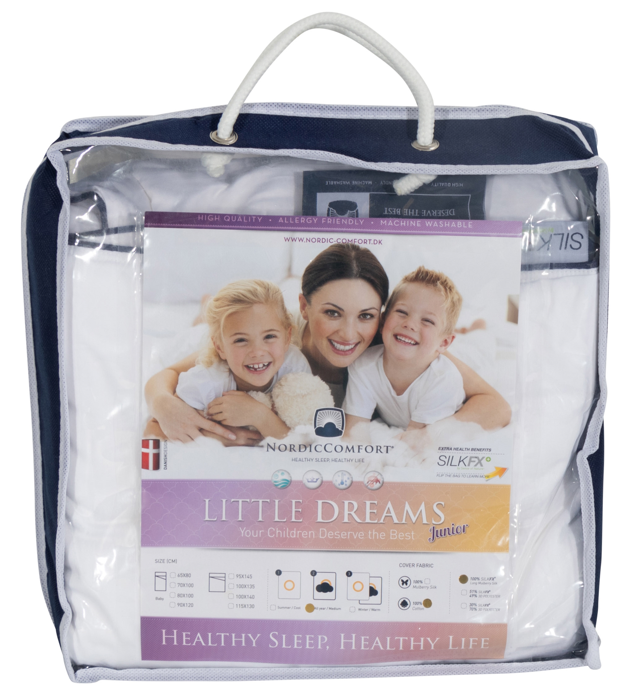 Forside »Innredning » Barnerommet » Juniordyne 100x140 cm Juniordyne i silke - Helårs juniordyne - 100x140 cm - Nordic Comfort juniordyne Spar26% Nordic comfort 1.899,001.399,00NOKSpar 500,- På lager Trustpilot Antall Legg i kurv Se mer fra: Nordic comfort Artikkelnummer:8501 Les vår dyneguide Les om vedlikehold av dyner og puter Se vårt store utvalg av puter Har du spørsmål om produktet? Silkedyne - HelårsdyneNordic Comfort100 % ren mulberry silke fyll Størrelse: 100x140 cm Type: Helårs silkedyne Junior Brand: Nordic Comfort - Little dreams silkedyne Silketetthet: 275 g m2 Fyllvekt: 370 g Fyll: Langfibret mulberry silke Bolster: Myk og eksklusiv tettvevd bomullscambric Vask: Ja, kan maskinvaskes (Viktig å bruke enzymfritt vaskemiddel) Garanti: 10 år Leveres i en eksklusiv bæreveske Sertifisering: STANDARD 100 by OEKO-TEX® (SHHO 090844) Sertifisering: Crossvent Silk FX Når bare det beste er godt nok for familiens yngste! Nordic Comfort junior silkedyne er laget av SilkFX, som er langfibret mulberry silke fyll med 100 % bomullscambric utenpå. På grunn av SilkFX-teknologien er silkefyllet vaskbart, og dynen kan derfor vaskes i en vanlig vaskemaskin. Junior silkedynen er forbedret med det unike CrossVent, utviklet av Nordic Comfort for enda bedre ventilasjon, komfort og temperaturregulering. Vi anbefaler silkedynen for barn som har det varmt om natten. Her får du en dyne av høy kvalitet med silkens gode egenskaper. Denne silkedynen har 10 års garanti. Egenskaper: Luksuriøs silkefiber Opplev det ultimate innen sovemiljø Temperaturregulerende Forbedrer sunn og dyp søvn ved å tilpasse seg kroppstemperaturen din Allergivennlig Avviser husstøvmidd og allergener – færre allergiske reaksjoner Antibakteriell Renere og sunnere sovemiljø Fuktabsorberende Reduserer nattesvette og fuktig sovemiljø Pustende egenskaper Lar kroppen puste naturlig og reduserer overoppheting om natten Nordens mest solgte silkeprodukter er fra Nordic Comfort. Merket ble grunnlagt i 2007, og har som mål å produsere en deilig silkeserie av høyeste kvalitet for forbrukeren. Med hjelp fra deres søvneksperter kan du oppnå en optimal og forbedret natts søvn. Tilbake til Juniordyne 100x140 cm Du kan også være interessert i: Junior Silkepute - 40x45 cm - barnepute - Nordic Comfort"Junior silkepute Langfibret mulberry silke Nordic Comfort Veiledende utsalgspris : 579,00 Spar : -20,00 699,00 NOK599,00 NOK