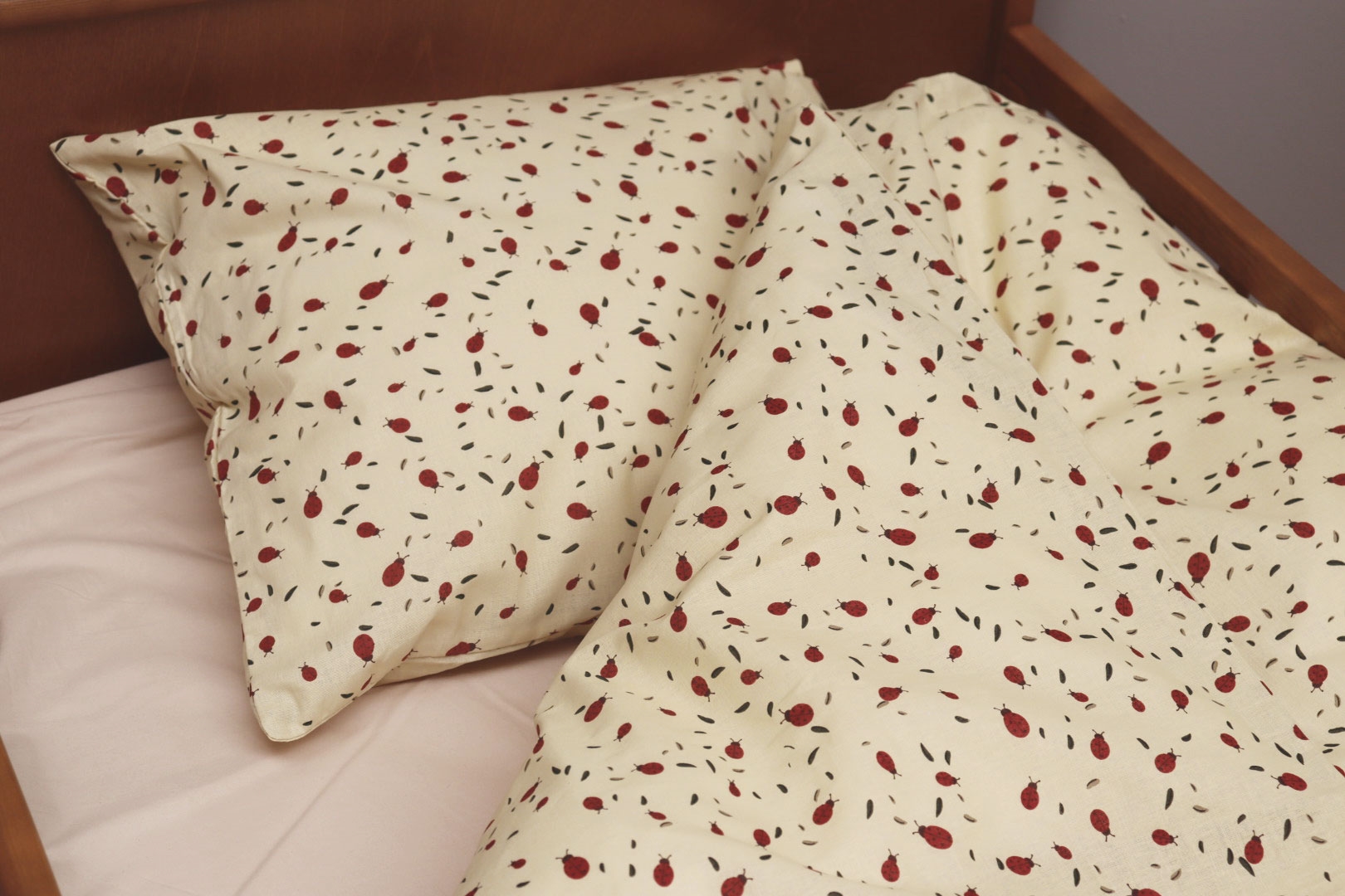 Forside »Sengetøy Juniorsengetøy 115x135 cm - Gul med marihøner - 100% bomulls sengesett Spar34% By Mats 349,00229,00NOKSpar 120,- På lager Trustpilot Antall Legg i kurv Se mer fra: By Mats Artikkelnummer:12140-27 Les vår sengetøysguide Se vårt store utvalg av laken Se vårt store utvalg av juniordyner 100x140 Har du spørsmål om produktet? Motiv med nordisk inspirasjon100 % myk bomull – pustende og behageligSTANDARD 100 by OEKO-TEX®-sertifisert Dynetrekk: 115x135 cm (merk størrelse) Putetrekk: 40x45 cm Materiale: 100% bomull Farge: Gul Motiv: Marihøner Lukning: Dyne med knapper og putetrekk med overlapp Vask: 60 grader Tørketrommel: Ja Kan strykes: Ja (OBS: Merk størrelsen) Sertifisering: STANDARD 100 by OEKO-TEX® (2016OK0709) Nydelig sengesett med fint og unikt trykk for både jenter og gutter. Sengetøyet er mykt og behagelig, slik at barnet ditt får en trygg og rolig søvn. Dette fine allover-trykket i dempede farger vil pynte og være dekorativt på barnerommet. Dynetrekket er enkelt å håndtere med smarte trykknapper, mens putetrekket har en praktisk overlapping. Skap en drømmeverden med dette sjarmerende sengesettet – leggetiden blir en lek. Sengetøyet er laget av 100 % myk bomull. Bomull er pustende, myk og behagelig mot barnets hud. I tillegg er det lett å vaske, noe som er viktig når det gjelder sengetøy til barn, som ofte kan bli flekkete. Behagelig og koselig sengetøy bidrar til å skape en beroligende atmosfære som fremmer en god nattesøvn. Du finner vårt utvalg av kvalitetslaken til barn her Vi har alt du trenger for å gjøre barnerommet magisk og koselig, hvor barna virkelig kan fordype seg i lekene sine og slippe fantasien løs. Se vårt utvalg til barnerommet her Tilbake til Sengetøy Du kan også være interessert i: Junior sengetøy 100x140 cm - Mykt hvitt sengesett i 100% egyptisk bomullssatin - Turiform sengetøyHøy kvalitet Ekstra fin, myk & pustende Jacquardvevd 799,00 NOK485,00 NOK Formsydd laken 70x140 cm - Hvit - 100% ekstra fin bomullssateng - Formsydd laken til juniormadrassFormsydd laken - Hvit 100% bomullssateng 70x140x15 cm Veiledende utsalgspris : 434,00 Spar : 35,00 599,00 NOK399,00 NOK Madrassbeskytter junior - 70x140 cm - Kokesikker bomull - Borg LivingPustende og allergivennlig Myk bomull OEKO-TEX®-sertifisert Veiledende utsalgspris : 434,00 Spar : 85,00 599,00 NOK349,00 NOK Juniordyne - Moskusdun - 100x140 cm - Helårs juniordyne - Borg Living dundyne100 % moskusdundyne Bæreevne: over 12 Helårsdyne Veiledende utsalgspris : 1.594,00 Spar : 609,00 2.599,00 NOK985,00 NOK
