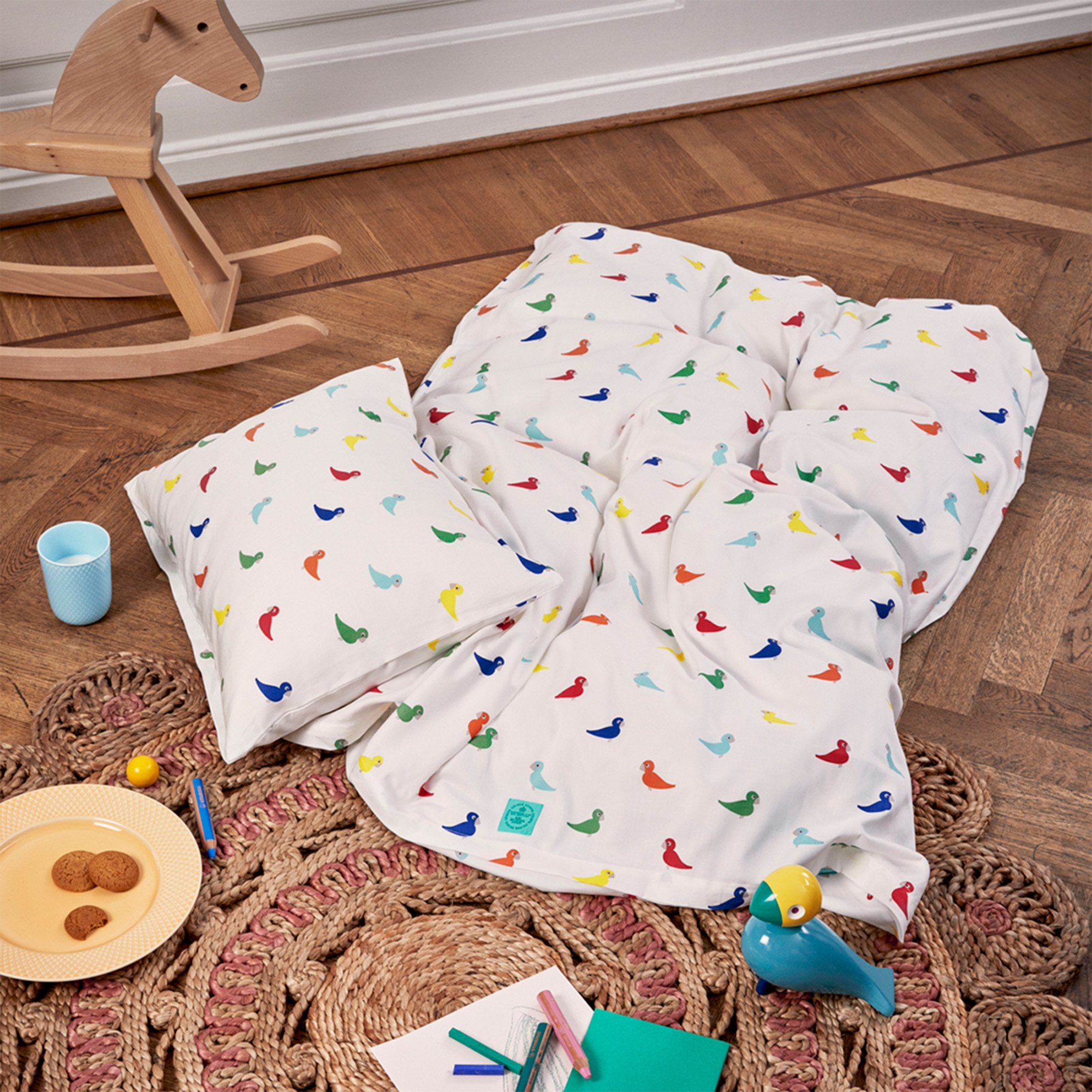 Kay Bojesen baby sengetøy - økologisk sengetøysett med fargerike sangfugler