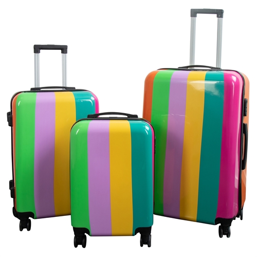 Forside »Kofferter Koffertsett - 3 stk. - Koffert med motiv - Regnbuestriper - Hardcase lettvekt koffert med 4 hjul Borg Living Knallpris:4.599,00NOK Få på lager Trustpilot Antall Legg i kurv Se mer fra: Borg Living Artikkelnummer:KC26 Se vårt utvalg av store håndklær Se vårt utvalg av toalettmapper og beautybokser Se vårt utvalg av vesker og ryggsekker Har du spørsmål om produktet? Koffertsett - 3 stk.Alle med 360° svingbare hjulMotiv: Brede vertikale striper Materiale: Hardcase - ABS lettvekt plast Motiv: Flerfargede vertikale striper Antall: 3 stk. kvalitetskofferter Lås: Ja Hjul: 4x360° dreiehjul Teleskophåndtak: Stor koffert: 2 posisjoner Mellom koffert: 3 posisjoner Kabinkoffert: 4 posisjoner Bærehåndtak: Ja, 2 stk. Inndeling: 2 rom - delt Innvendig spennestropp: Ja, justerbare kryssremmer Mål - Vekt - Volum Stor koffert: 72x48x30 cm • 3,9 kg • 104 L Mellom koffert: 60x41x28 cm • 3,1 kg • 69 L Kabinkoffert: 51x36x20 cm • 2,4 kg • 37 L Koffertsett i en solid og praktisk utgave. Settet har vakre og lett gjenkjennelige striper. Funksjonelt og komfortabelt koffertsett i et lekkert og eksklusivt design. Settet består av 3 romslige kofferter i praktiske størrelser, slik at du er dekket uansett hva ditt reisebehov måtte være. Koffertene er laget av robust og slitesterk lettvekt ABS-plast, som gjør dem både robuste og motstandsdyktige mot harde slag og trykk som kan oppstå på for eksempel et bagasjebånd. Med dette settet er du garantert et solid og holdbart koffertsett når du er på farten. Koffertene er utstyrt med to praktiske bærehåndtak - ett på siden, samt et teleskophåndtak og et bærehåndtak øverst. Teleskophåndtakene kan justeres i 4, 3 og 2 posisjoner, avhengig av størrelsen på kofferten. På den ene siden av koffertene er det plassert 4 små "føtter", slik at de alltid står trygt når du setter dem fra deg - du unngår dermed våte og skitne kofferter. Koffertene har 4 lettgående 360° svinghjul, noe som gjør dem enkle å ta med seg, enten det er på flyplassen eller stasjonen. Koffertene er utrolig enkle å transportere og manøvrere. Alle kofferter i settet har integrert lås og en kraftig glidelås. Fyll på med en smart og praktisk toalettmappe for å komplettere reiseutstyret ditt. Se vårt utvalg her Koffertene er minst like funksjonelle innvendig som utvendig. De kan nemlig deles opp i to separate rom. Det ene rommet har justerbare stropper til klærne så de holder seg på plass, mens det andre rommet har glidelås for å holde løse gjenstander sikre og organiserte. Tilbake til Kofferter