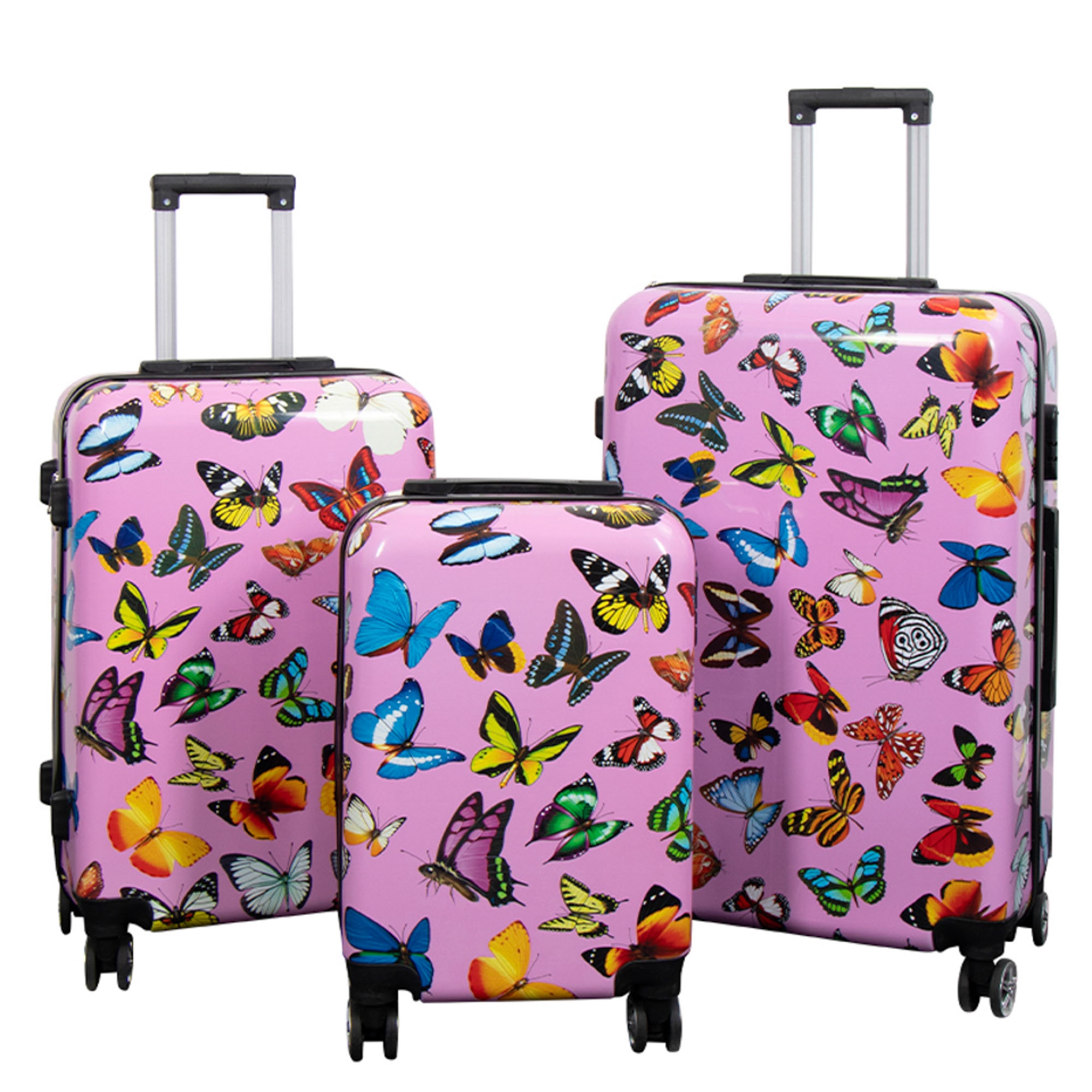 Forside »Kofferter Koffertsett - 3 stk. - Koffert med motiv - Rosa med sommerfugltrykk - Hardcase lettvekt koffert med 4 hjul Borg Living Knallpris:4.599,00NOK Få på lager Trustpilot Velg størrelse Velg variant Antall Legg i kurv Se mer fra: Borg Living Artikkelnummer:KC-43 Se vårt utvalg av store håndklær Se vårt utvalg av toalettmapper og beautykofferter Se vårt utvalg av vesker og ryggsekker Har du spørsmål om produktet? TeleskophåndtakAlle med 360° drejehjulOpdelelige rum og kryssremmer Materiale: Hardcase - ABS lettvekt plast Motiv: Rosa med sommerfugltrykk Antall: 3 stk. kvalitets kofferter Lås: Ja Hjul: 4x360° svingbare hjul Teleskophåndtak: Stor koffert: 2 posisjoner Middels koffert: 3 posisjoner Kabinkoffert: 4 posisjoner Bærehåndtak: Ja, 2 stk. Inndeling: 2 rom - delt med gjennomgående glidelås Indre spennestropp: Ja, justerbare kryssremmer Mål - Vekt - Volum Stor koffert: 77x48x30 cm • 3,9 kg • 104 L Middels koffert: 67x43x24 cm • 3,1 kg • 69 L Kabinkoffert: 55x35x21 cm • 2,4 kg • 37 L Koffertsett i en solid og praktisk utgave. Settet har et flott og lett gjenkjennelig motiv - Rosa med sommerfugltrykk Funksjonelt og komfortabelt koffertsett i et lekkert og eksklusivt design. Settet består av 3 romslige kofferter i praktiske størrelser – så er du dekket uansett hva dine reisebehov måtte være. Koffertene er laget av robust og slitesterk lettvekt ABS plast, som gjør dem både robuste og motstandsdyktige mot harde slag og trykk som kan oppstå på f.eks. et bagasjebånd. Med dette settet er du garantert et solid og slitesterkt koffertsett når du er på farten. Koffertene er utstyrt med 2 praktiske bærehåndtak - ett på siden og ett øverst, samt et teleskophåndtak. Teleskophåndtakene kan justeres i henholdsvis 4, 3 og 2 posisjoner, avhengig av koffertens størrelse. På den ene siden av koffertene er det plassert 4 små "føtter", så de alltid står trygt når du setter dem fra deg - du unngår dermed våte og skitne kofferter. Koffertene har 4 lettgående 360° svingbare hjul, som gjør dem enkle å dra gjennom flyplassen eller stasjonen. Koffertene er utrolig enkle å transportere og manøvrere rundt. Alle kofferter i settet har integrert lås og kraftig glidelås. Fullfør reiseutstyret med en smart og praktisk toalettmappe. Se vårt utvalg her Koffertene er minst like funksjonelle innvendig som utvendig - de kan deles inn i to separate rom. Det ene rommet har justerbare stropper til klærne, slik at de holder seg på plass, og det andre rommet har glidelås for å holde løse gjenstander fra å skli rundt over klærne. Tilbake til Kofferter