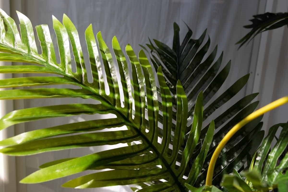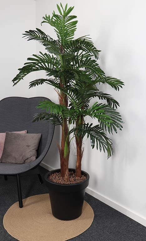Forside »Innredning » Dekorasjoner » Kunstige planter Kunstig Areca palme - 185 cm høy - Store og dekorative blader - Kunstig plante Spar22% Home-tex 2.299,001.799,00NOKSpar 500,- På lager Trustpilot Antall Legg i kurv Se mer fra: Home-tex Artikkelnummer:YD064 Har du spørsmål om produktet? Kunstig Areca palmeHøyde: 185 cmNaturtro plante i god kvalitet Type: Areca palme - kunstig gulvplante Farge: Grønn Høyde: 185 cm før planting på høyeste punkt Diameter: 110 cm Materiale: Plast Vedlikehold: Kan enkelt vedlikeholdes med en fuktig klut Leveres i: eske Naturtro og vedlikeholdsfri skjønnhet Denne kunstige Areca-palmen er din mulighet til å bringe litt tropisk atmosfære inn i hjemmet eller på kontoret uten å bekymre deg for vedlikehold. Denne naturtro planten er vakker og fyldig, gir liv til ethvert rom og passer perfekt inn i en stue, gang eller hall. Med en høyde på 185 cm og en diameter på 110 cm er dette Areca-palmetreet iøynefallende og gir et eksotisk preg til innredningen din. Plast som materiale Plast er et svært slitesterkt materiale som tåler daglig bruk og slitasje. Den er også vannavstøtende, noe som gjør den ideell for kunstige planter, da de ikke vil råtne eller falme i solen. I tillegg er den enkel å rengjøre — bare tørk av med en fuktig klut. Naturtro utseende Denne kunstige Areca-palmen er designet for å ligne ekte, med sin livlige grønne farge og detaljerte blader. Dette bidrar til å skape en rolig og avslappende atmosfære i rommet ditt. Vedlikeholdsfri En av de største fordelene med denne kunstige Areca-palmen er at den ikke krever noen form for vedlikehold. Du trenger ikke vanne eller beskjære den, og du trenger ikke bekymre deg for hvor mye lys den får. Dette gjør den ideell for dem som ønsker en grønn atmosfære uten ekstra arbeid. Tenk deg å sitte i stuen din med denne storslåtte Areca-palmen som tilfører et snev av tropisk skjønnhet. Du kan nyte det naturtro utseendet og følelsen av å være omgitt av naturen, uten vedlikeholdsstress. Vurder også å ta en titt på kategorien vår Kunstige planter. Tilbake til Kunstige planter