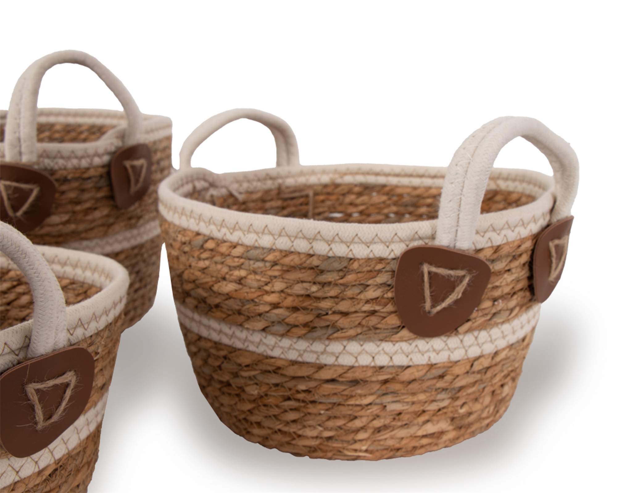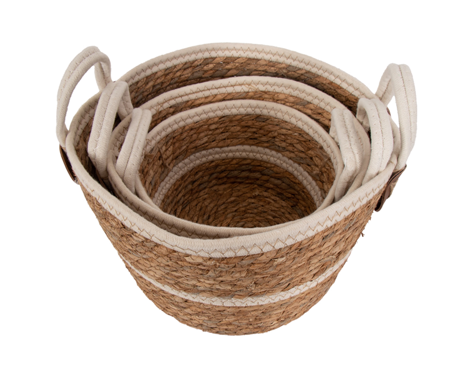 Forside »Innredning » Oppbevaring » Flettekurver Kurvsett - 3 stk. flettede kurver i sjøgress - Perfekt til små oppbevaring Spar40% Home-tex 449,00269,00NOKSpar 180,- Få på lager Trustpilot Antall Legg i kurv Se mer fra: Home-tex Artikkelnummer:PR761 Har du spørsmål om produktet? Velegnet til oppbevaringUnike og stilfulle detaljerRobust design Materiale: Sjøgress og bomull Mål: Stor: 20x32 cm Mellom: 17x25 cm Liten: 13x23 cm Skap orden med stil - Sjøgress kurvsettDette settet med sjøgresskurver hjelper deg med å organisere hjemmet på en elegant måte. Settet består av tre kurver i ulike størrelser, designet for å dekke forskjellige oppbevaringsbehov. Hver kurv har unike detaljer som gir hjemmet ditt ekstra sjarm.Sjøgress som materialeSjøgress er et naturlig og bærekraftig materiale kjent for sin robusthet og holdbarhet. Det gir et rustikt preg til ethvert rom, samtidig som det beholder sin funksjonelle verdi. Sjøgress er også lett å rengjøre og vedlikeholde, noe som gjør det til et praktisk valg for oppbevaringskurver.Det unike designetDesignet av disse kurvene er en blanding av tradisjonelt håndverk og moderne estetikk. Den øverste og midterste delen av hver kurv er festet med hvitt bomullstau, noe som skaper en kontrastfull effekt. Håndtakene er laget av det samme hvite bomullstauet og festet med brunt kunstskinn og linsnor, noe som gir kurvene et unikt og stilfullt utseende.Du kan finne en rekke lignende produkter i kategorien oppbevaring. Tilbake til Flettekurver