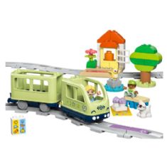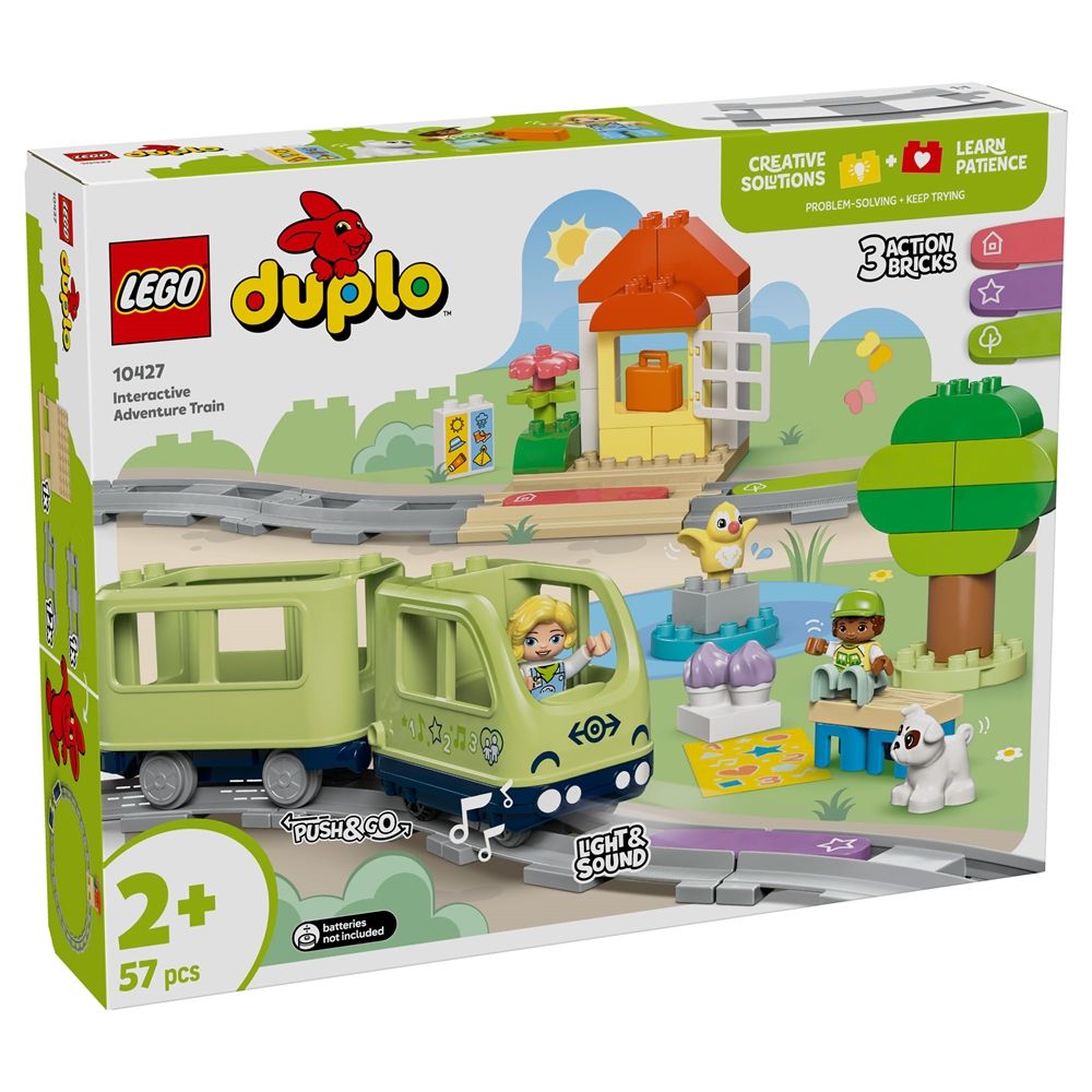 Forside »Alle LEGO-produkter LEGO DUPLO - Interaktivt opplevelsestog - 10427 - 57 deler Duplo Knallpris:1.019,00NOK Få på lager Trustpilot Antall Legg i kurv Se mer fra: Duplo Artikkelnummer:LEG10427 Har du spørsmål om produktet? Små barn kan sette seg i førersetet med leketøyet Interaktivt opplevelsestog. Med dette togleketøyet kan de minste bestemme hvor turen går, og deretter begi seg ut på en reise fylt med lys, lyder og læring. Bygge- og ombyggingsleketøyet inneholder klosser til å bygge en park, strand, togstasjon eller familiens hjem, så små barn skjerper nysgjerrigheten og finner kreative måter å bygge på. Læringsleken øker barns tålmodighet og styrker finmotorikken og kreativiteten når de fokuserer på å bygge togbane og lage en rute for passasjertoget. De 3 funksjonsklossene gjør leken levende, og lekentoget lager realistiske lyder når det kjører over dem - bruker 4 stk. AAA-batterier (medfølger ikke). De kan også bruke den spesielle tilpasningsklossen til å spille av sine egne lyder, som kan tas opp med den gratis LEGO® DUPLO®-appen Interactive Trains, og de kan kjøre toget ved hjelp av en bærbar elektronisk enhet. Tilbake til Alle LEGO-produkter