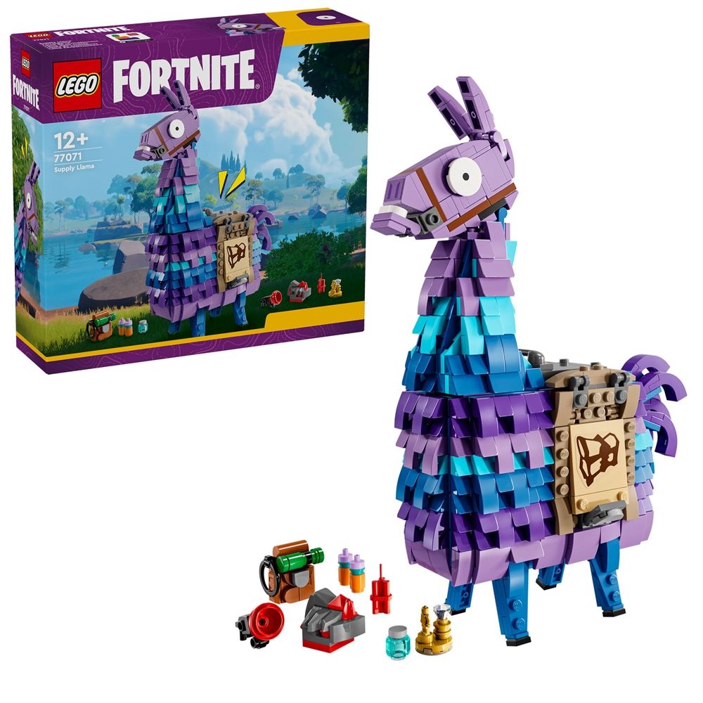 Forside »Alle LEGO-produkter LEGO Fortnite - Supply Llama - 77071 - 691 deler LEGO Architecture Knallpris:509,00NOK Få på lager Trustpilot Antall Legg i kurv Se mer fra: LEGO Architecture Artikkelnummer:LEG77071 Har du spørsmål om produktet? Gjør gaming-eventyret levende med LEGO® Fortnite byggesettet Supply Llama for gamere. Det er inspirert av LEGO Fortnite-videospillet, så fans fra 12 år kan skape et fantastisk spillinspirert leketøy. Unge gamere kan ha timevis med moro med å samle lama-piñataen fra Fortnite, kjent som Supply Llama i LEGO Fortnite-videospillet. Den er full av morsomme detaljer som inspirerer til kreativ lek, og har et bevegelig hode og en munn som kan åpnes, samt en sadel og masse kult utstyr, bl.a. en Grappler, Slurp Juice, Rough Ruby, Back Pack, Good Luck Charm, Slap Juice og Dynamite. Alle disse er basert på spennende gjenstander fra LEGO Fortnite og inspirerer barn til å gjenskape sine favorittøyeblikk vekk fra skjermen. Tilbake til Alle LEGO-produkter