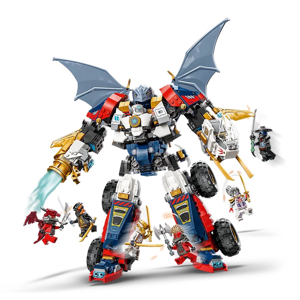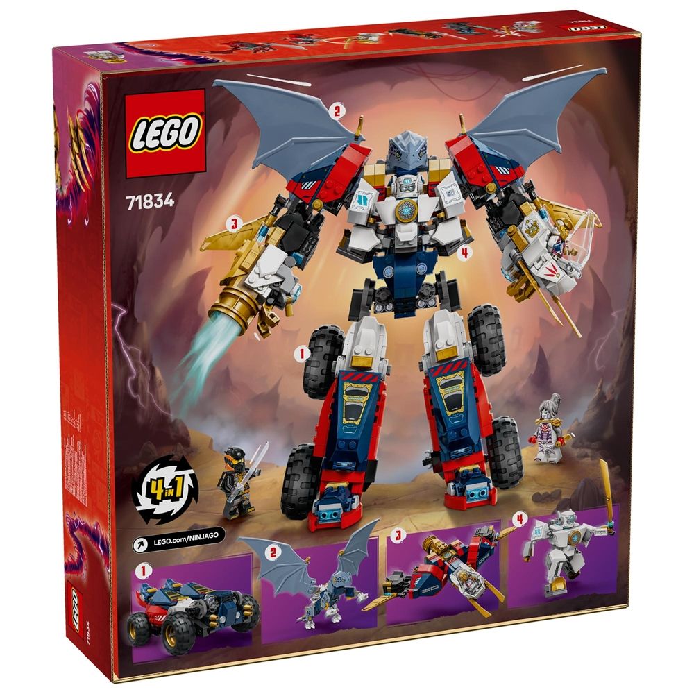 Forside »Alle LEGO-produkter LEGO Ninjago - Zanes ultrakombirobot - 71834 - 1187 deler LEGO Ninjago Knallpris:1.189,00NOK Få på lager Trustpilot Antall Legg i kurv Se mer fra: LEGO Ninjago Artikkelnummer:LEG71834 Har du spørsmål om produktet? \r\n\tGutter og jenter fra 9 år kan nyte endeløse lekemuligheter og gjenskape spennende action fra sesong 3 av TV-serien NINJAGO®: Dragene våkner med 4-i-1-byggesettet Zanes ultrakombirobot. Barn kan leke med den imponerende store kombi-mechroboten, som har bevegelige ben, føtter, armer, håndledd, fingre og hode, dragevinger samt cockpit og 2 skyttere. De kan også dele den i 4 mindre leketøysmodeller: en drage med bevegelige deler og vinger, et jetfly med bevegelige motorer og et roterbart cockpit, en bil med 4 store terrenggående hjul og 2 cockpits som kan åpnes, inkludert et med skjulte blastere, samt en actionfigur av Zane.\r\n\r\n\r\n\r\n\tNinja-settet inneholder 6 minifigurer, slik at barna kan oppleve timevis med kamper med rollespill. Ninjaene Sora og Cole og deres allierte Pixal er bevæpnet med kule ninjavåpen for å ta opp kampen mot den skurkete trioen, som består av Nokt, en drageaktig kriger og en drageaktig speider, som hver har sine egne våpen som tilbehør.\r\n\r\n Tilbake til Alle LEGO-produkter