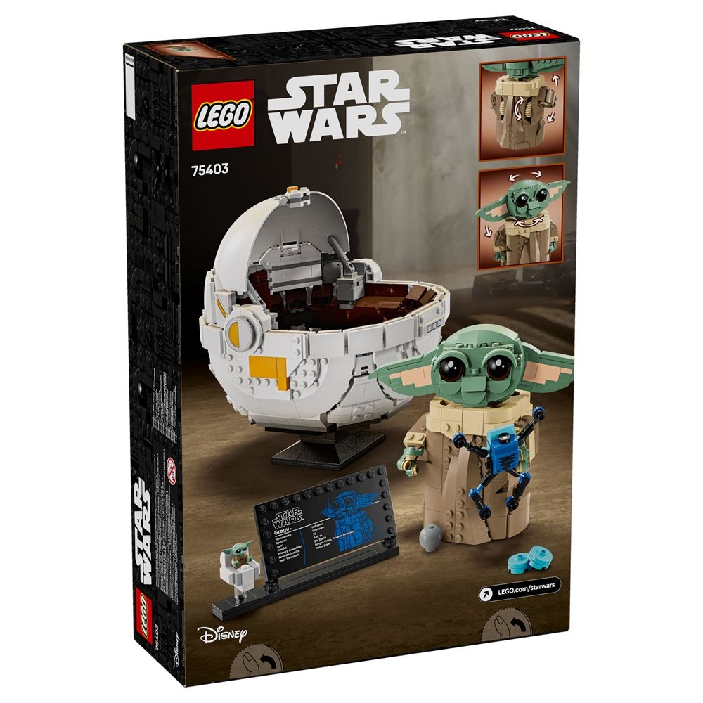 Forside »Alle LEGO-produkter LEGO Star Wars - Grogu med svevevogn - 75403 - 1048 deler LEGO Star Wars Knallpris:1.239,00NOK Få på lager Trustpilot Antall Legg i kurv Se mer fra: LEGO Star Wars Artikkelnummer:LEG75403 Har du spørsmål om produktet? La barn bygge sin kjærlighet til Grogu med denne LEGO® Star Wars™ leketøysfiguren og byggemodellen av Grogu med svevevogn. Bygge- og utstillingsmodellen er en søt gave til gutter, jenter og enhver fan av Star Wars: The Mandalorian, og det er et morsomt og lekent innredningselement til rommet. Grogu har armer som betjenes med dreieknapp samt bevegelige ører og hode, og han kan stilles ut i eller utenfor svevevognen. Det er også en klossbygget Sorgan-frø (Grogus favorittsnack), en girknopp og en småkake, som Grogu kan holde. Byggesettet inneholder trinnvis veiledning, og i LEGO Builder-appen er det zoom-, roterings- og 3D-visningsverktøy som gjør den kreative opplevelsen enda bedre. Tilbake til Alle LEGO-produkter