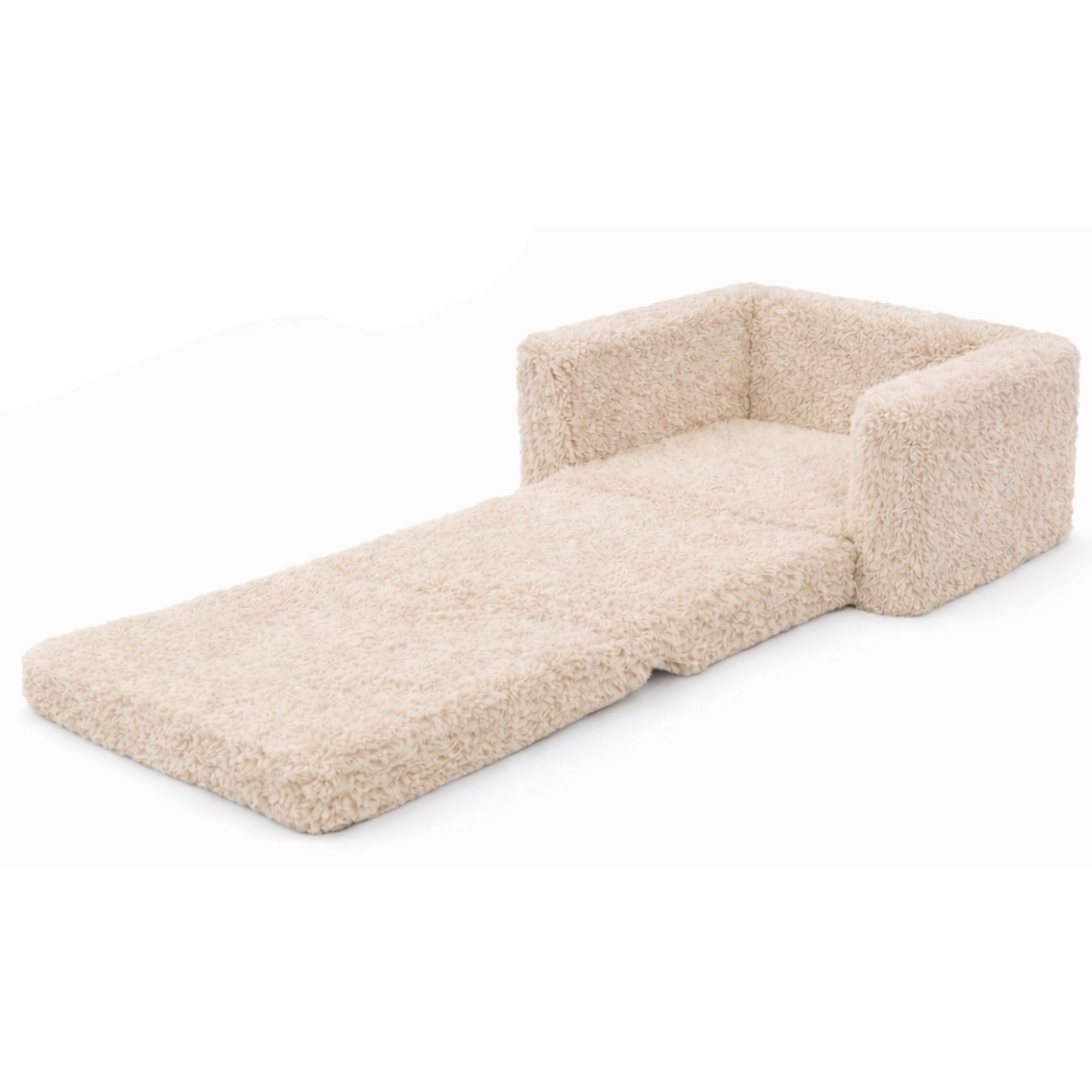 Denne utrolig myke sammenleggbare stolen for barn er designet med fokus på komfort og flere funksjoner i ett produkt. Når stolen er sammenfoldet, fungerer den som en koselig liten lenestol i barnehøyde. Når den foldes ut, blir den til en mini-madrass som kan brukes til lek, avslapning eller overnattende lekekamerater. Det gjør den til et åpenbart valg både til barnerommet og stuen.