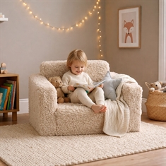 Den sammenleggbare barnestolen er laget med et veldig mykt fleecetrekk og stabilt skumfyll som gir god støtte og gjør den behagelig å sitte i. Den lette konstruksjonen gjør det enkelt for barnet å flytte stolen rundt - enten den skal brukes som lesekrok, TV-stol eller koselig barnestol.