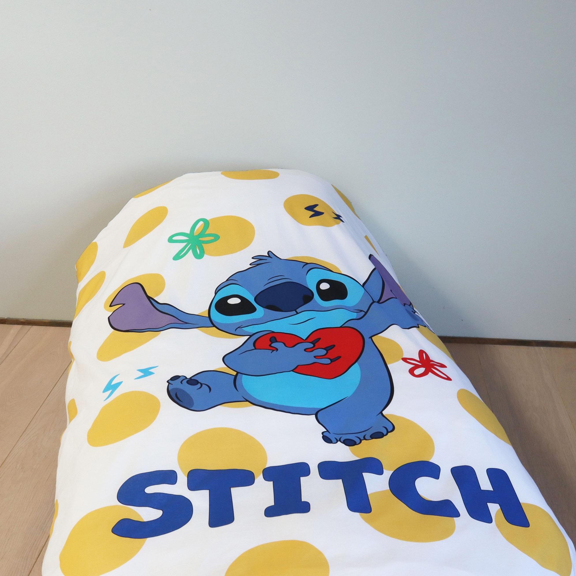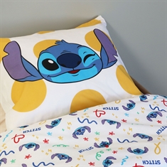 Forside »Sengetøy » Sengetøy til barn » Sengetøy til barn 140x200 cm Lilo og Stitch sengetøy 140x200 cm - Vendbart sengesett med Stitch - 100% mykt bomulls sengetøy Spar36% Licens 549,00349,00NOKSpar 200,- På lager Trustpilot Antall Legg i kurv Se mer fra: Licens Artikkelnummer:6089-1 Les vår sengetøyguide Se vårt store utvalg av laken Se vårt store utvalg av dyner 140x200 Har du spørsmål om produktet? Høy pusteevneMykt og deilig bomullOEKO-TEX® sertifisert Dynetrekk: 140x200 cm Putetrekk: 60x63 cm Materiale: 100% myk bomull Farge: Hvit og gul Motiv: Vendbart - Forside med Stitch, bakside med all-over print Lukking: Dynetrekk med knapper, putetrekk med overlapp Vask: 60° Tørketrommel: Ja Tåler stryking: Ja Sertifisering: STANDARD 100 by OEKO-TEX® (2011PK0073 AITEX). Din garanti for at produktet er fritt for helseskadelig kjemi. Sengesett i 100% bomull, med Stitch fra Lilo og Stitch. Produsert med lette og pustende bomullsfibre gir sengesettet en følelse av mykhet som gjør at dynen vil falle naturlig rundt barnet ditt. Et slitesterkt sengesett med høy pusteevne, som vil gjøre sengetid til en gledelig opplevelse. Skap en koselig stemning på barnerommet med dette Stitch sengesettet med gule sirkler. Sengsettet er vendbart. Med et søtt design av Stitch på forsiden og all-over print på baksiden, vil dette sengetøyet garantert gjøre sengetid til en gledelig opplevelse. Sengsettet er produsert i 100% myk bomull som gjør settet slitesterkt og med høy pusteevne. Den rene bomullskvaliteten gir et deilig og mykt sengesett som bidrar til god sovekomfort for barnet. Sengetøyet er også OEKO-TEX sertifisert, som er din garanti for at settet er fritt for skadelige stoffer, så det er trygt for barnet å bruke. Se vårt store utvalg av tilbehør til barnerommet For barnet bør sengen være et trygt sted og alle elementene skal sammen skape myke og gode omgivelser for barnet å finne ro i. Bruk derfor gjerne barnets interesser for å skape et trygt soverom for barnet. Hos oss finner du et stort utvalg av tilbehør til sengen og barnerommet, fra laken til dyner, puter, sengetøy og mye mer, og mange produkter med alle barnas favoritter. Alt sammen elementer som kan bidra til å skape riktig sovemiljø og rom for ditt barn. Her kan du finne deilige og myke kvalitetslaken Tilbake til Sengetøy til barn 140x200 cm