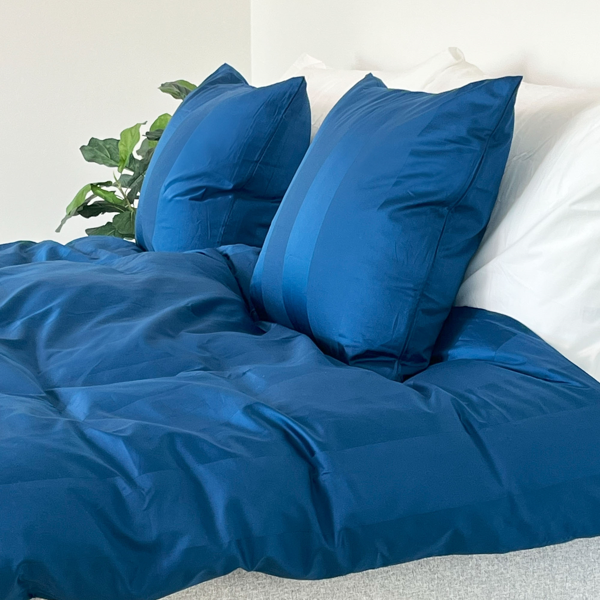 Forside »Sengetøy » Enkelt sengetøy » Ekstra langt sengetøy 140x220 cm Luksuriøst sengetøy - 140x220 cm - Blått eksklusivt sengesett i 100% bomullssateng fra By Borg Spar59% By Borg 1.899,00785,00NOKSpar 1.114,- På lager Trustpilot Antall Legg i kurv Se mer fra: By Borg Artikkelnummer:863-2 Les vår sengetøysguide Se vårt store utvalg av laken Se vårt store utvalg av dyner 140x220 Har du spørsmål om produktet? Glansfullt og luksuriøstEkstra fin og tettvevdTC400 - Veldig mykt Dynetrekk: 140x220 cm Putetrekk: 1 stk. á 60x63 cm Materiale: 100% bomullssateng Veving: Ekstra fin og tett 400TC Jacquardvevd (trådantall = antall tråder per kvadrattomme) Farge: Blå Design: Sublim Merke: Premium By Borg Lukking: Dyne- og putetrekk med skjult innvendig glidelås Vask: 60° Tørketrommel: Ja Kan strykes: Ja Sertifisering: STANDARD 100 by OEKO-TEX® (11-47542) Eksklusivt sengetøy fra By Borg Dette glansfulle og myke Jacquard-satengvevde sengesettet har en ekstra fin og tett veving med hele 400TC, noe som betyr at det er 400 tråder vevd sammen per kvadrattomme. Jo høyere TC, desto tettere veving, som resulterer i et jevnere, mykere og mer holdbart sengesett. Dette gjør sengetøyet mer behagelig å ligge med og kan også bidra til en bedre natts søvn, da det føles mer glatt og behagelig mot huden. I tillegg til den høye TC er sengesettet jacquardvevd, noe som betyr at sengetøyets matte og blanke striper er vevd direkte inn i stoffet. Dette gir et helt unikt og vakkert uttrykk med matte og blanke striper. Ønsker du et behagelig, mykt og glansfullt sengesett, kan du med fordel velge dette sengetøyet fra By Borg. Det vakre designet med de ensfargede, brede stripene kan enkelt integreres i forskjellige innredningsstiler på soverommet. Miks og match med forskjellige gavl- eller pynteputer, og du vil raskt få et soverom som ser vakkert og innbydende ut. Sengesettet lukkes med skjult glidelås i både dyne og putetrekk. Kjøp enkelt matchende putetrekk til dine ekstra puter her Frisk opp sengen og soverommet med et flott og behagelig sett sengetøy som dette. Samtidig kan du sikre maksimal sovekomfort ved å legge til et nytt, mykt laken av høy kvalitet. Du finner vårt store utvalg av laken her. Premium By Borg er et dansk merke kjent for å produsere eksklusive serier av boligtekstiler. Premium By Borg legger stor vekt på følelsen av luksus og velvære i en travel hverdag – alltid designet og produsert med øye for de minste detaljer. Her er stikkordet ren velvære. Tilbake til Ekstra langt sengetøy 140x220 cm