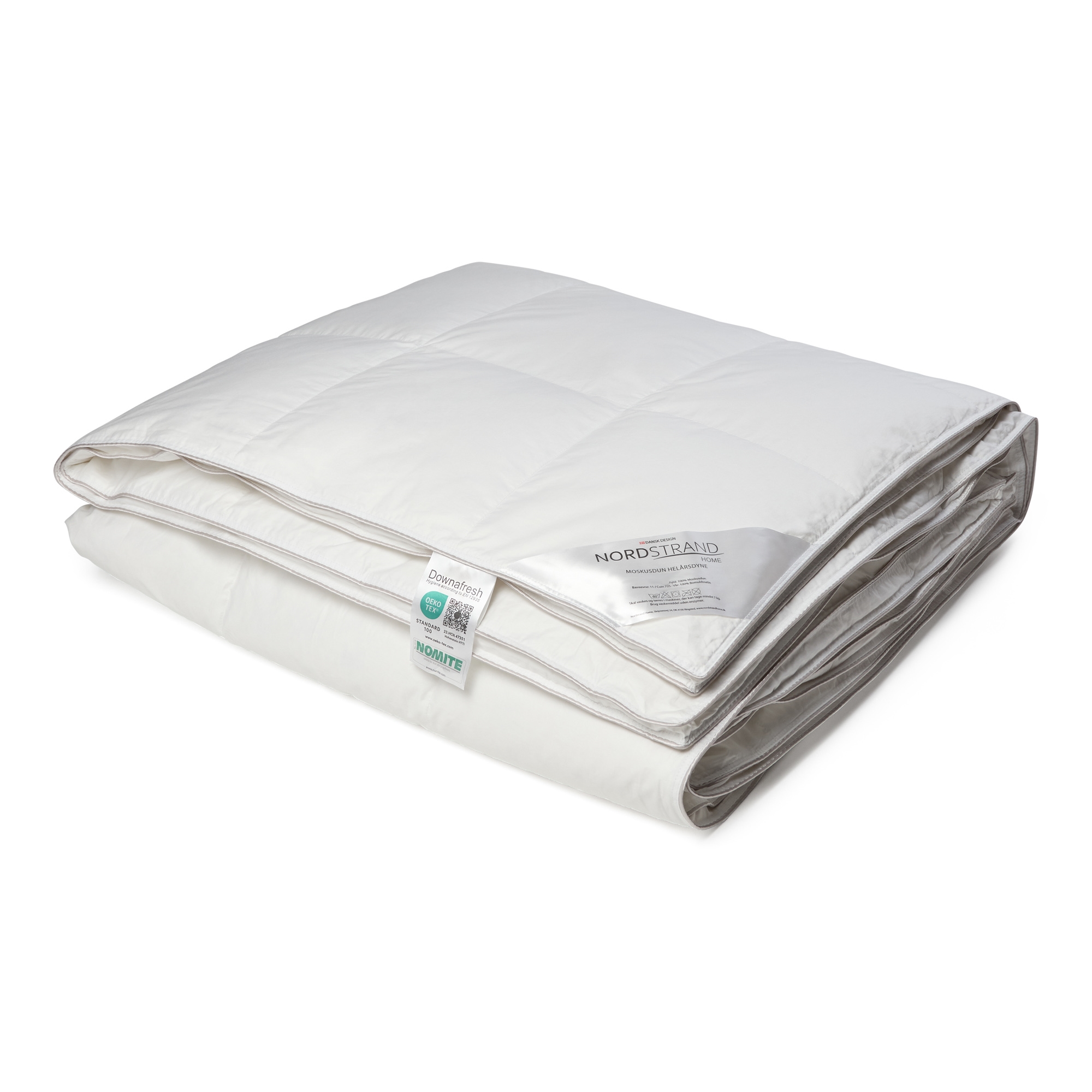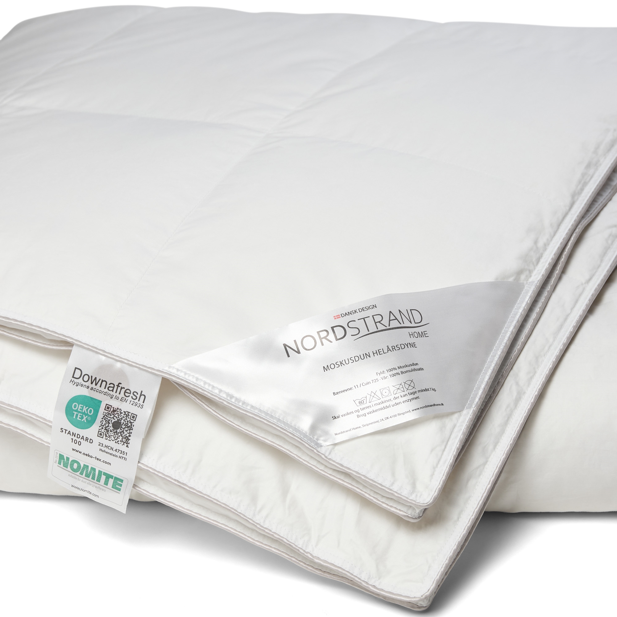 Forside »Dyner » Enkeltdyner » Enkeltdyne 140x200 cm Luksus dyne 140x200 cm - 100% bomullssateng moskusdyne - Helårsdyne - Nordstrand Home moskusdundyne årsdynen Spar62% Nordstrand Home 5.999,002.299,00NOKSpar 3.700,- På lager Trustpilot Antall Legg i kurv Se mer fra: Nordstrand Home Artikkelnummer:NS7001-1 Les vår dyneguide Les om vedlikehold av dyner og puter Se vårt store utvalg av puter Har du spørsmål om produktet? 100% fine moskusdunEkstra lekker & myk dyneHøy bæreevne & god isolering Størrelse: 140x200 cm - Enkelt dyne Type: Lun helårsdyne Fyld: 100% moskusdun Brand: Nordstrand Home Fyldvekt: 550g Bæreevne: 11 (Gammel målemetode) Bæreevne: 725 (Ny målemetode) Bolster: 100% bomullssateng (Fin, tettvevd og ekstra myk) Konstruksjon: 6x8 kassettedyne med bokskant og grå piping Vask: 60° (Viktig å bruke Enzymfritt vaskemiddel) Tørketromling: Ja Garanti: 10 år Leveres i pustende oppbevaringspose Sertifisering: NOMITE - Fri for husstøvmidd Sertifisering: Downpass - Høyeste dyreetiske forhold Sertifisering: DOWNAFRESH - 100% rene dun Sertifisering: EN12934-normen - Klasse 1 dun Sertifisering: STANDARD 100 by OEKO-TEX® (23.HCN.47531 Hohenstein HTTI). Din garanti for at produktet er fri for helseskadelig kjemi. 100% myke moskusdun Luksuriøs, lekker myk og høy kvalitets moskusdyne - produsert med 100% moskusdun og ekstra fin bomullssateng bolster. Denne eksklusive helårsdyne er en sammensetning av de mykeste materialer, fineste produksjonsteknikker og ikke minst beste sertifiseringer. Dundynen er konstruert i kassetter for en optimal fyll- og varmefordeling. Herudover har den bokskant (panelsider), som gjør at dunene kan isolere helt ut til kanten og inneholde mer luft - for en jevn isolering både i kassettene og gjennom hele dynen. Dynen er sydd med innvendige kassett-/kanalvegg, som gjør at det ikke skapes kuldebroer i dynen. Varmen kan derfor lett fordele seg gjennom hele dynen. Se alle våre hodeputer her Allergivennlig - NOMITE bomullssateng bolster Moskusdynen er produsert med et flott hvitt bolster (vår) av 100% tettvevd og meget fin bomullssateng, samt en fin grå piping kant, alt dette gir ikke kun dynen sitt elegante uttrykk og ekstra myke følelse. Denne sammensetning av bolster gjør også at støvmidd ikke kan trenge gjennom, hvilket gjør at dynen også er velegnet til allergikere. Se vårt store utvalg av sengetøy i 140x200 cm her Med Nordstrand Home er du sikret boligtekstiler i dansk design - i nordisk stil. Nordstrand Home legger stor vekt på følelsen av velvære i et flott og avslappende miljø. Med Nordstrand Home produkter behøver du ikke gå på kompromiss, du vil alltid finne produkter blant det store sortimentet, av høy kvalitet og klassisk design i et moderne samspill. Nordstrand Home – Så føler du deg hjemme! Tilbake til Enkeltdyne 140x200 cm